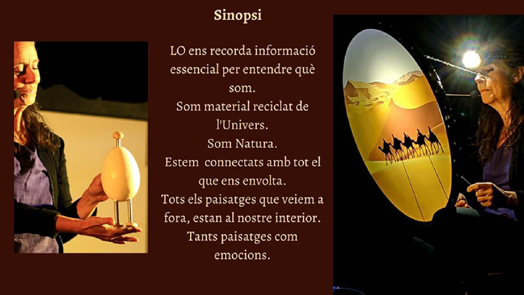 El primer espectacle es farà el diumenge dia 22 obrirà el cicle Lo. Els paisatges que ens habiten, de Lydia Encinas. Un espectacle infantil d'ombres xineses recomanat a partir de 3 anys.