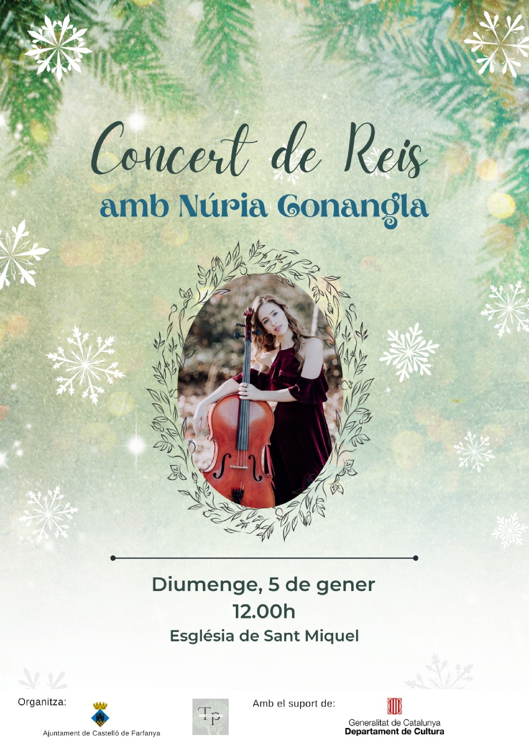 Diumenge tindrà lloc la segona activitat cultural del cap de setmana. Es tracta del concert de Reis de la violoncel·lista Núria Conangla. Aquest recitat es farà a l'Església de Sant Miquel a les 12 del migdia. Totes dues són propostes que organitza l'ajuntament i la Trobada Poemus.