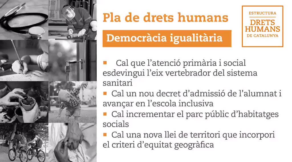 Experts proposen un pla amb mesures per 'conquerir' drets a Catalunya com l'habitatge o el medi ambient. Els drets de les dones, de la gent gran i dels infants són alguns dels objectius d'una iniciativa que interpel·la Govern i altres administracions