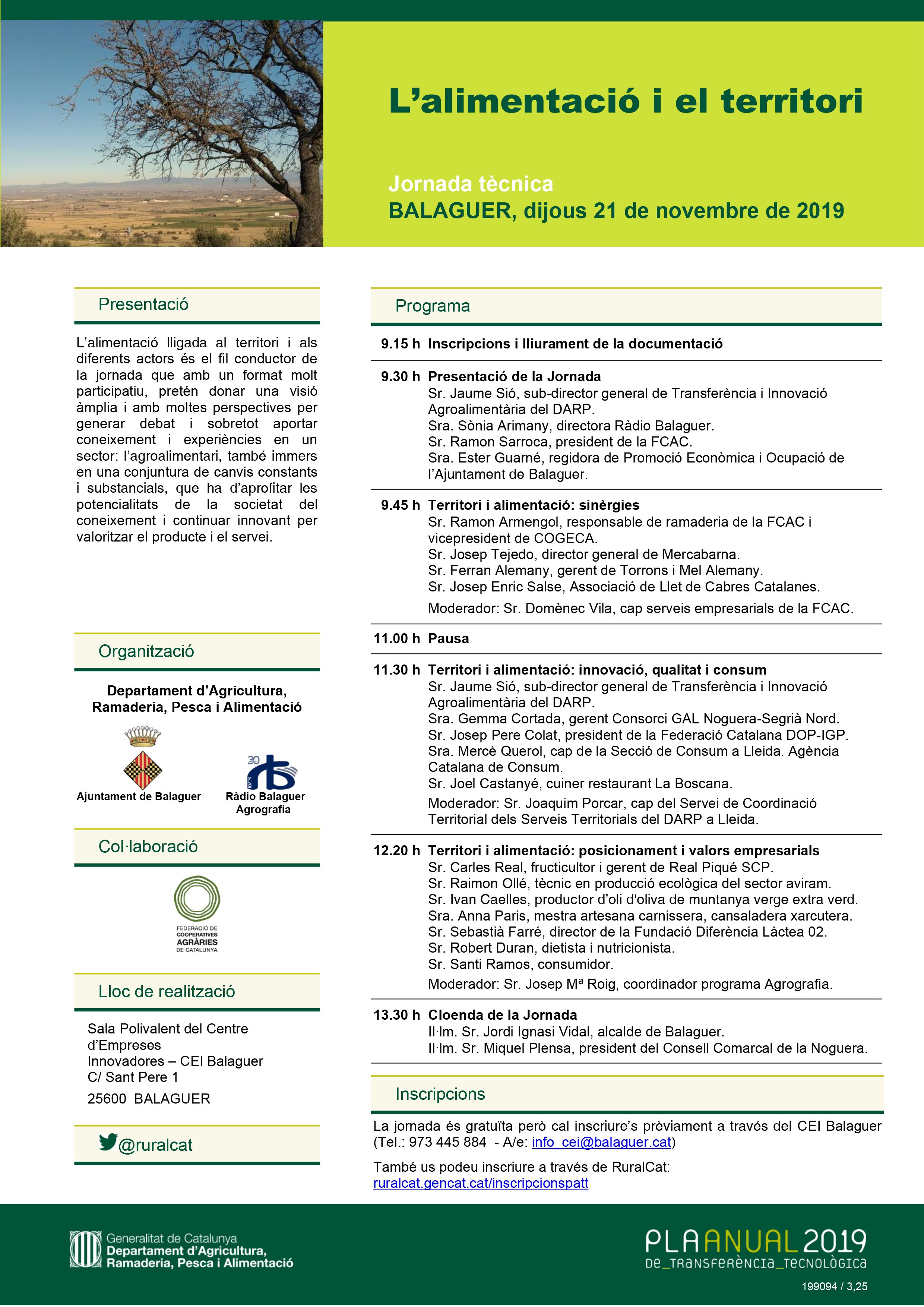 El CEI de Balaguer acollirà el proper 21 de novembre una jornada tècnica sobre la producció agrària i el consum.