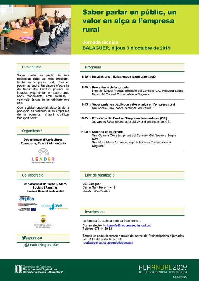 Aquest dijous continua la programació del programa Arrenca amb una jornada tècnica sota el títol, Saber parlar en públic, un valor en alça a l'empresa rural. La jornada es farà durant el matí al CEI Balaguer.
