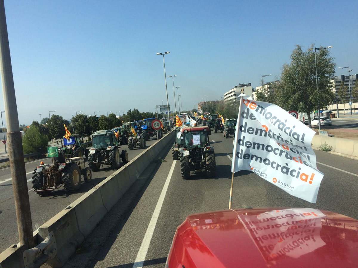 Pagesos d'arreu del país organitzen marxes amb tractors 'en defensa de la democràcia i la llibertat'.