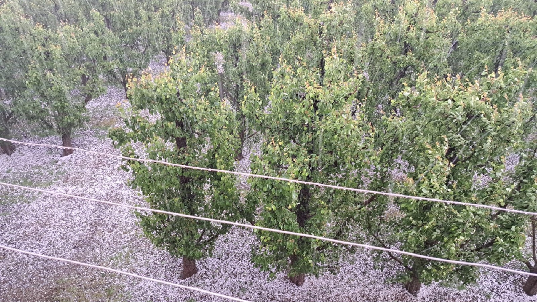 Una tempesta de calamarsa afecta cultius de fruita dolça en municipis del Baix Segre i el nord del Segrià. La pedregada deixa un mantell blanc en el paisatge i caldrà esperar per avaluar la magnitud de les pèrdues