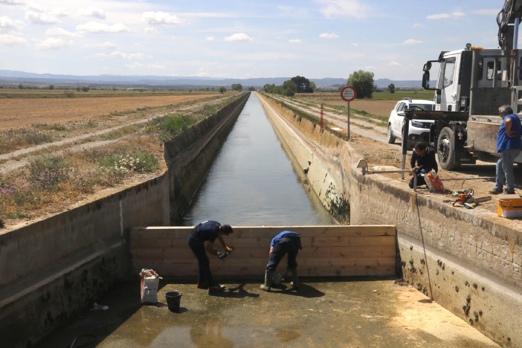 El canal d'Urgell ja baixa sense volum i es preparen les tanques per reservar l'aigua pels municipis. Després de tancar comportes del canal principal només circula un pam d'aigua per garantir abastaments