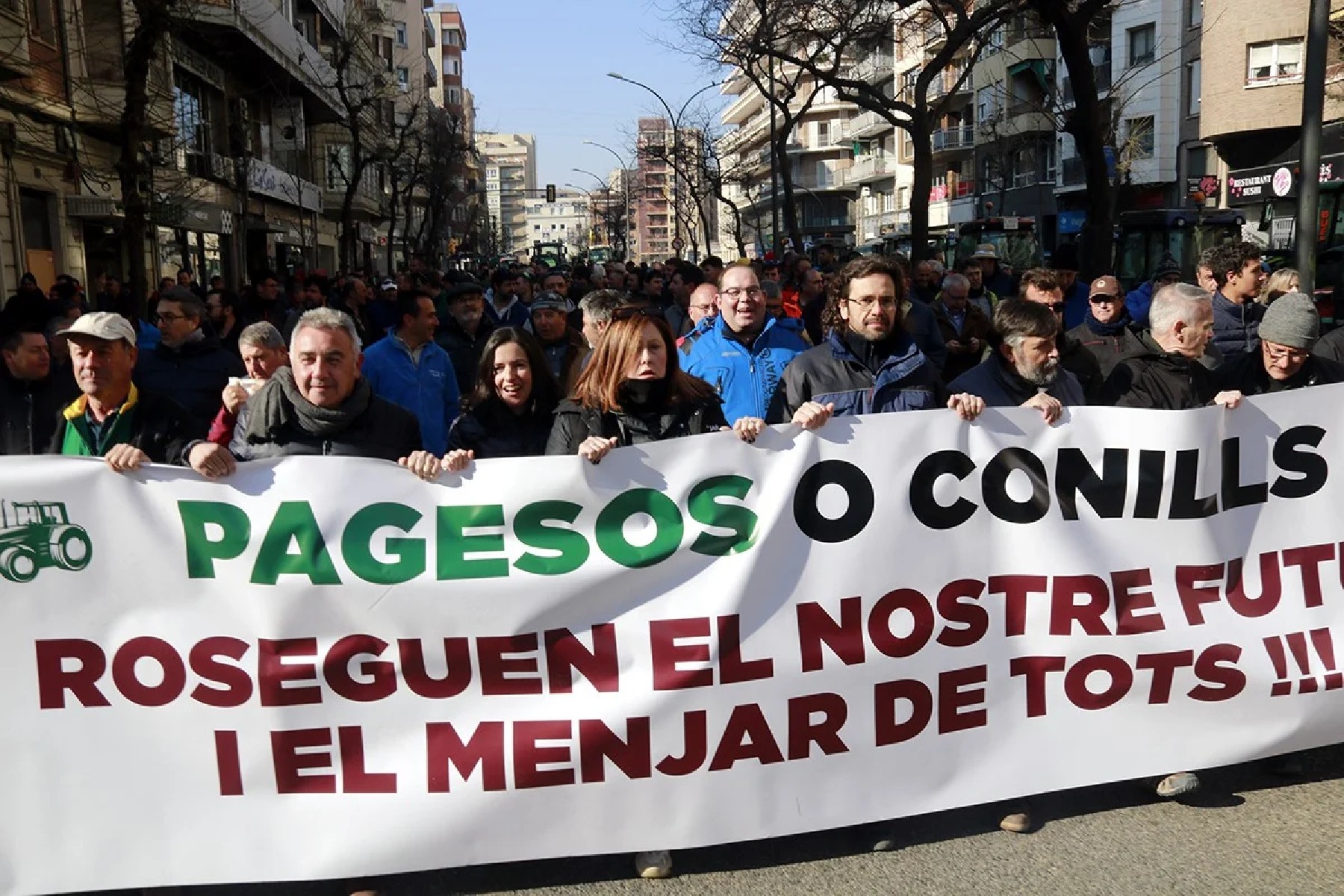 Moments de tensió a les portes d'Acció Climàtica de Lleida on agricultors han llançat conills com a acció de protesta. Uns 420 tractors participen en la tercera marxa lenta a Ponent en menys d'un mes contra la plaga de fauna salvatge