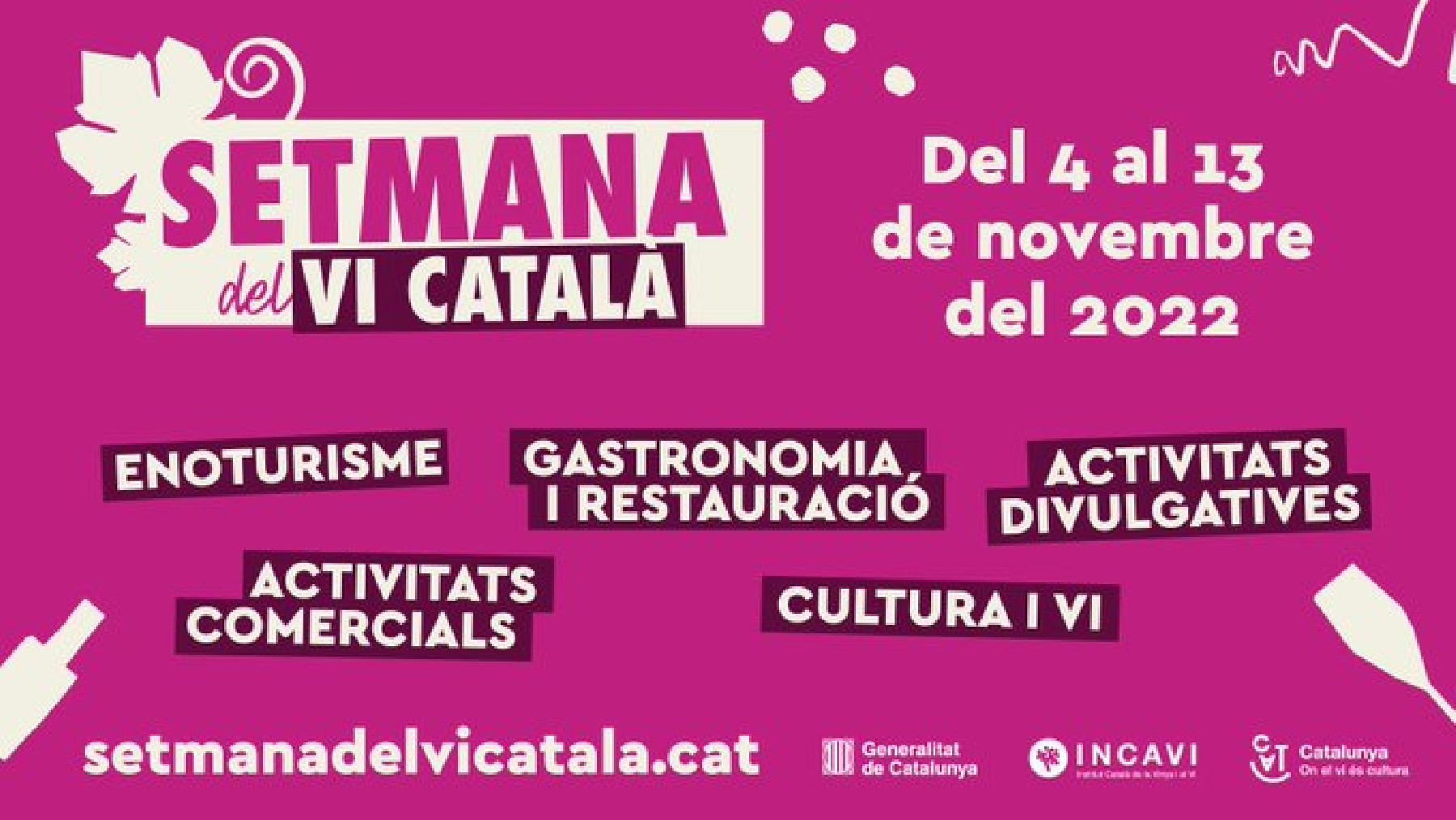 La Setmana del Vi Català comptarà amb un centenar d'activitats repartides pel territori i dirigides a tots els públics. L'edició d'enguany se celebrarà del 4 al 13 de novembre i concentrarà els professionals del sector al Gastronomic Forum