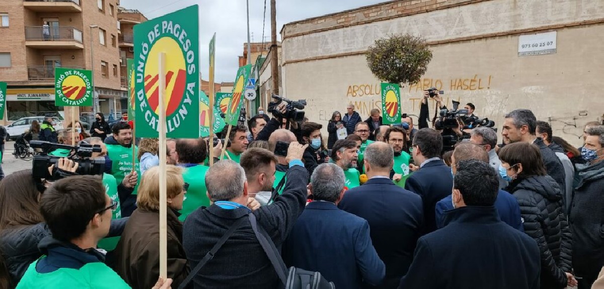 Unió de Pagesos protesta a la Fira de Mollerussa davant la crisi de preus i els costos desbordats. El sindicat reclama el suport de les empreses de serveis presents a la Fira i els adverteix que si la pagesia pateix, ells no vendran