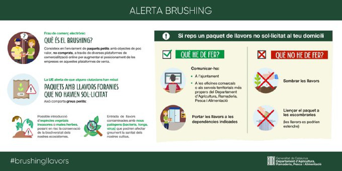 El Departament d'Agricultura alerta sobre enviaments de sobres amb llavors de països tercers no demanades. La introducció és prohibida, ja que suposa un risc pel perill d'introducció de llavors contaminades, plagues i malalties de les plantes i per poder