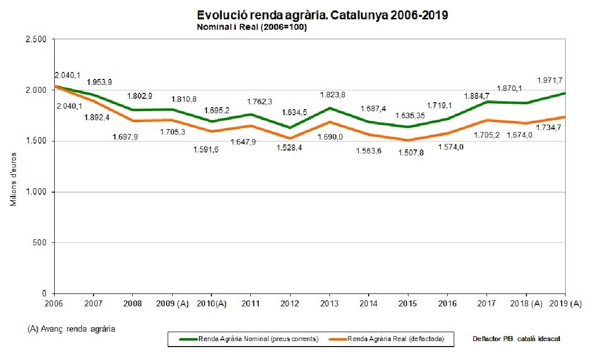 La Renda Agrària catalana el 2019 creix un 5,4% en relació al 2018 i supera, per primer cop, la renda del 2007 a preus corrents