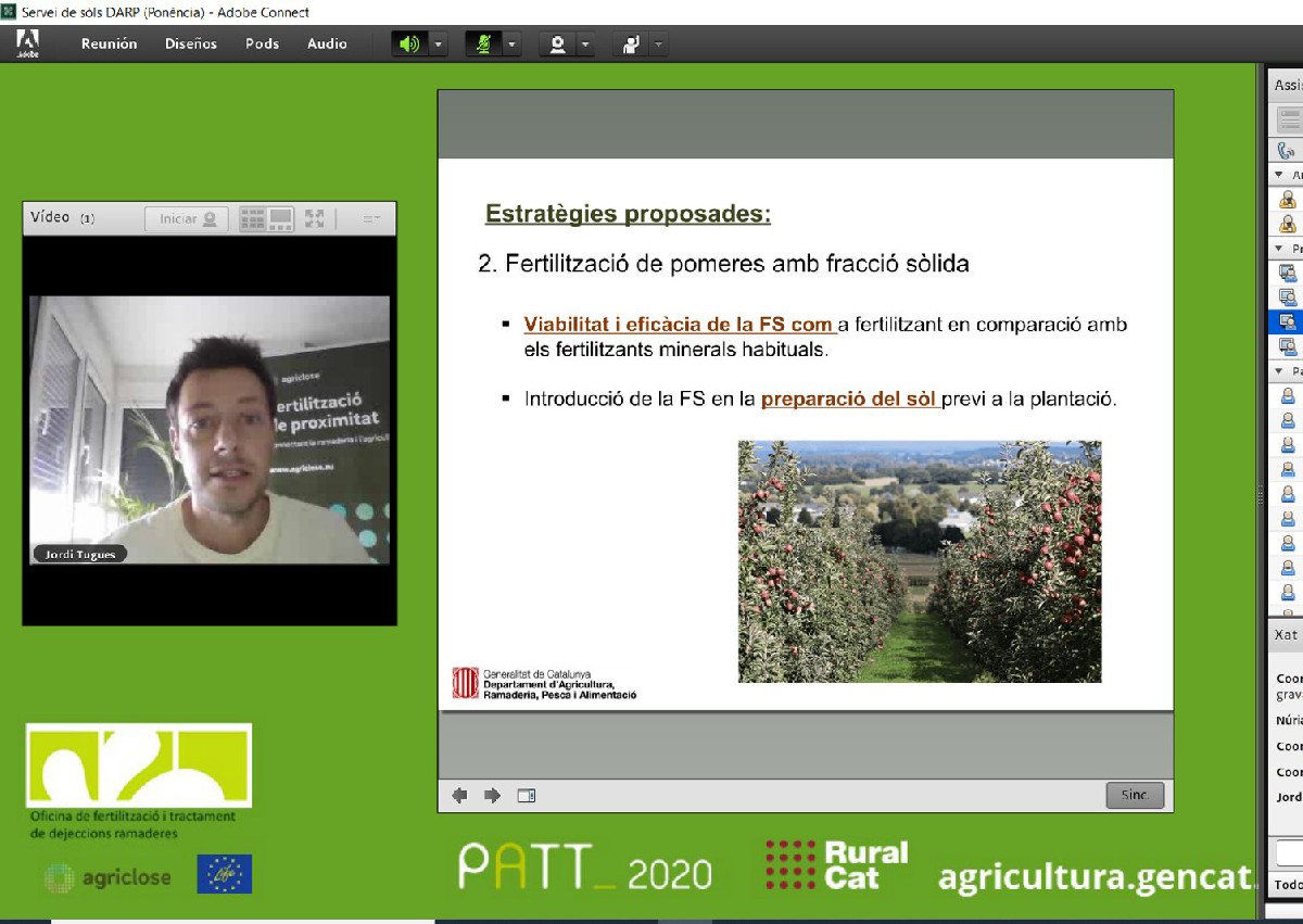 Activitat digital celebrada en el marc de la Fira de Sant Miquel. La jornada 'Ús de la fracció líquida dels purins en la fertilització' ha analitzat els pros i contres tècnics, econòmics, ambientals i sanitaris de l'ús d'aquest producte en els fruiters