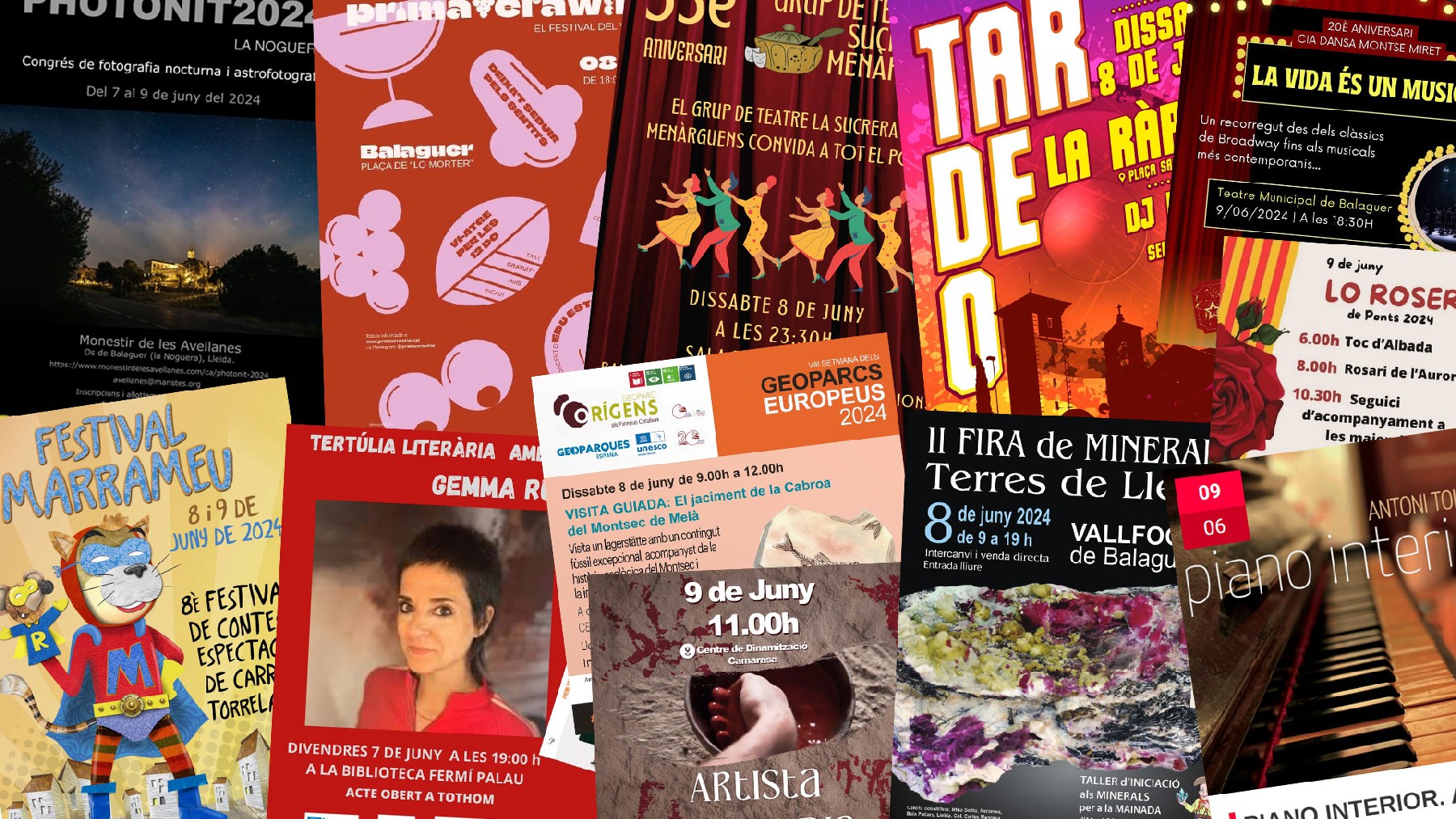 A Balaguer l'acte més destacat és el Primavera Wine, el festival de vins catalans que se celebra dissabte. A comarca se celebra el festival de contes Marrameu a Torrelameu, El Photonit a Les Avellanes i la Fira dels Minerals de Vallfogona