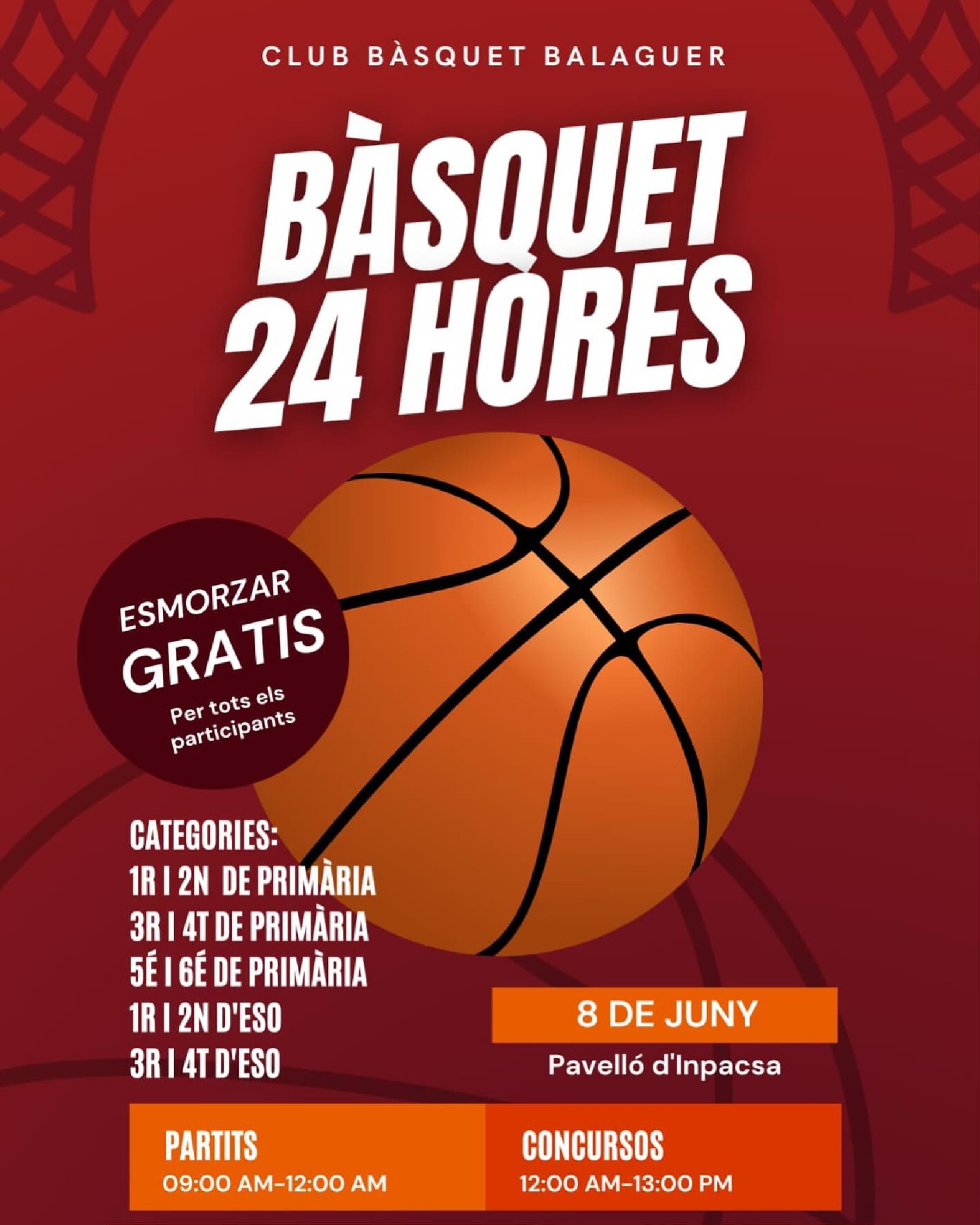 Aquest dissabte se celebren al pavelló Inpacsa de Balaguer les 24 hores de bàsquet. Es tracta d'una competició entre diferents nivells i categories a càrrec del Club Bàsquet Balaguer