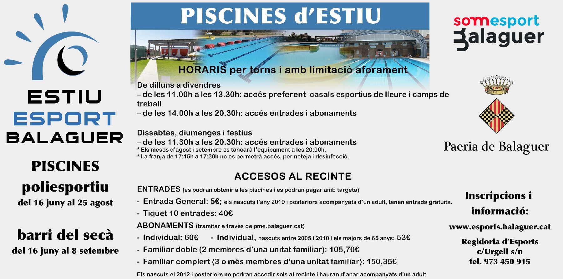 Balaguer començarà la temporada de les piscines d'estiu aquest diumenge 16 de juny