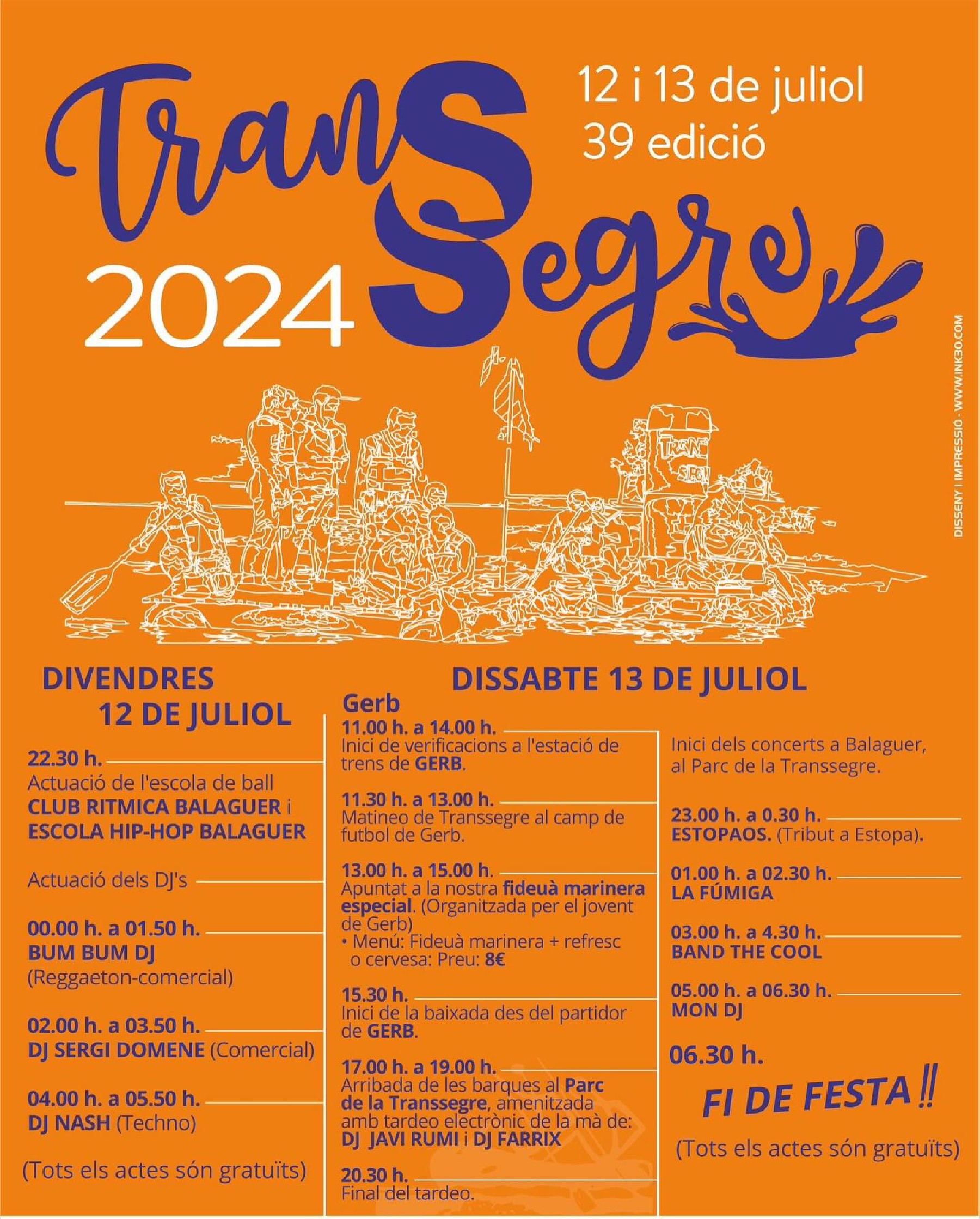 La Transsegre obre la inscripció a la baixada de barques, que aquest any estaran limitades a 100, i fa públic el cartell d'actes de tot el cap de setmana, en que destaquen noms com el dj Sergi Domene, La Fúmiga i Band The Cool