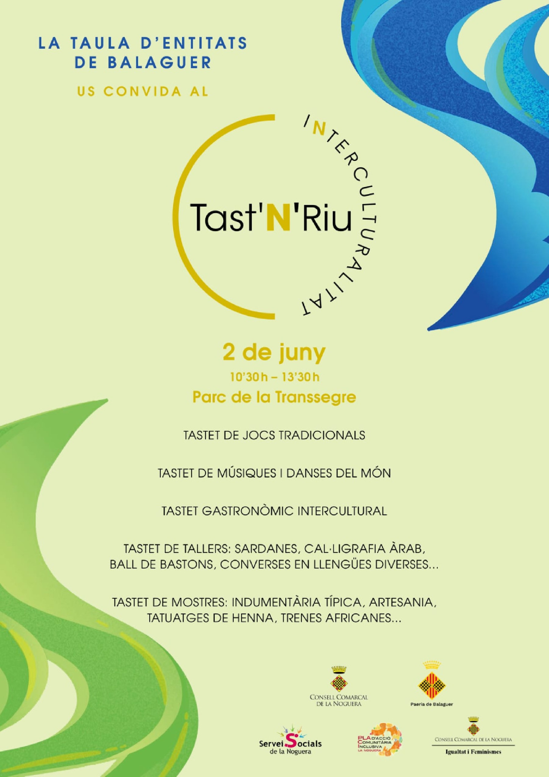 La sardana present als tastets d'interculturalitat. Amb el nom 'Tast'n'Riu' aquest diumenge Balaguer acollirà una jornada intercultural plena d'activitats, on la sardana hi serà present amb un taller d'iniciació a la sardana obert a tothom
