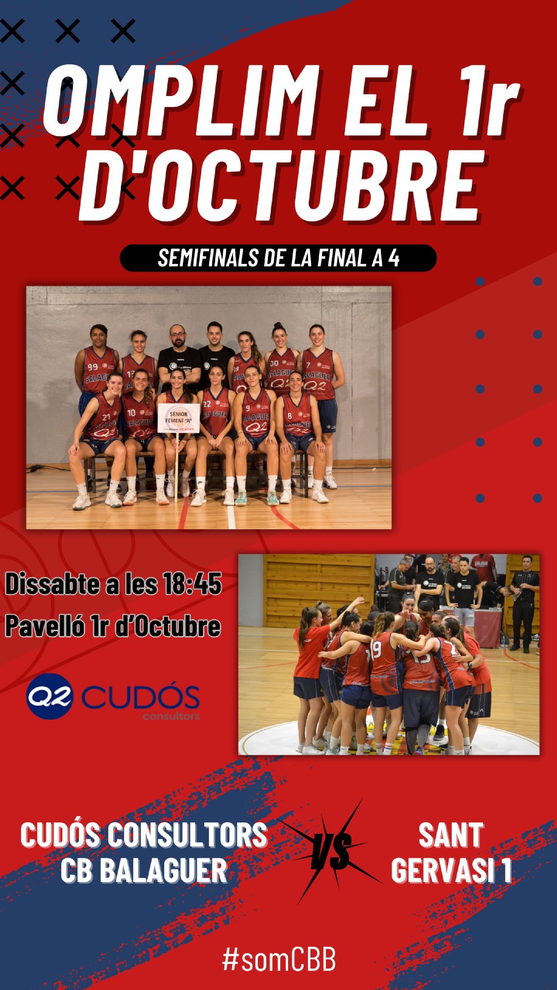 El Cudós Consultors del Club Bàsquet Balaguer es juga aquest cap de setmana l'ascens a Super Copa. Dissabte a les 18.45 al 1r d'Octubre de Balaguer tindrà lloc la semifinal amb el Sant Gervasi, i el club fa una crida a omplir el pavelló