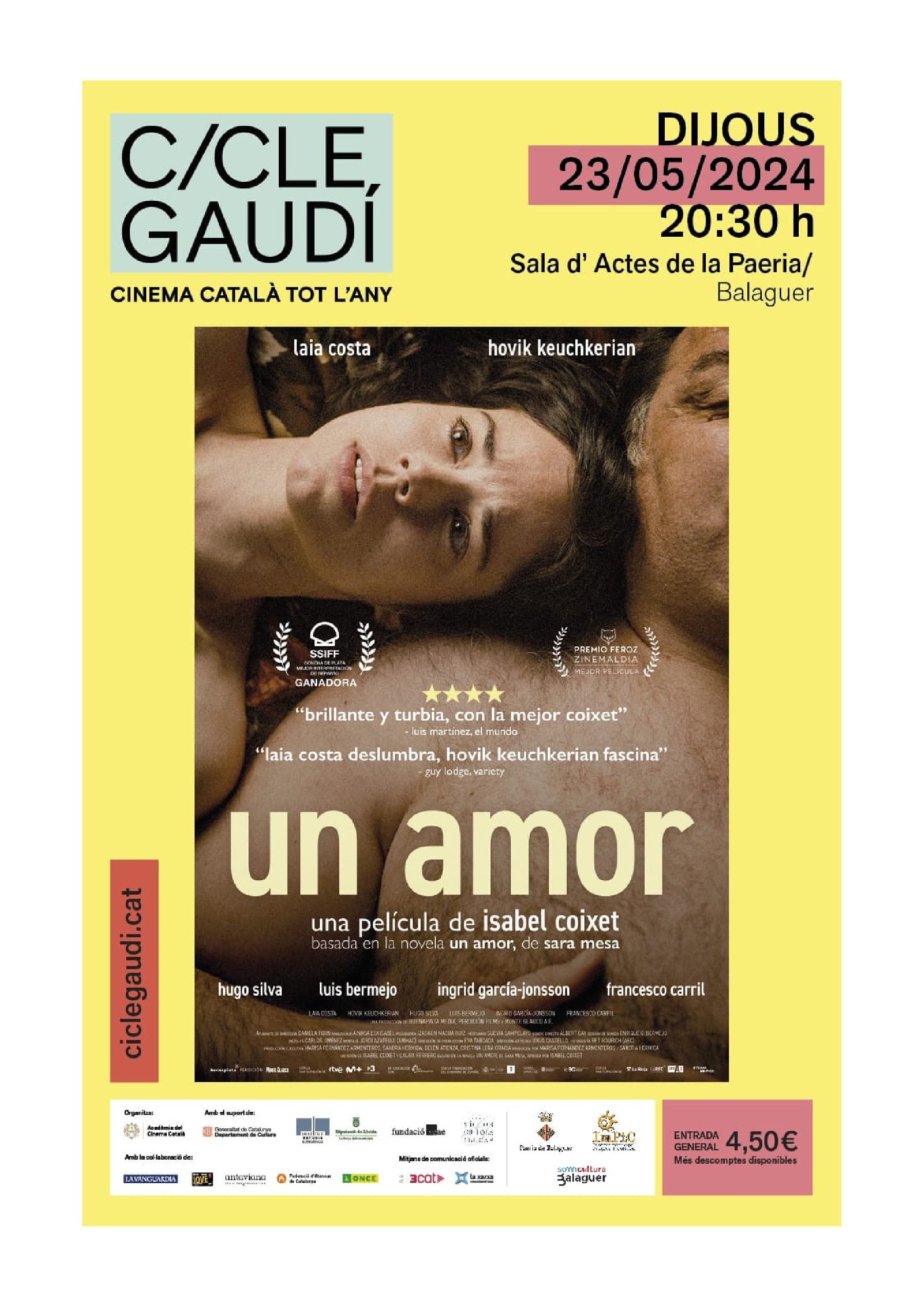 Continua a Balaguer el Cicle Gaudí de cinema amb la projecció aquest dijous dia 23 de maig de la pel·lícula UN AMOR