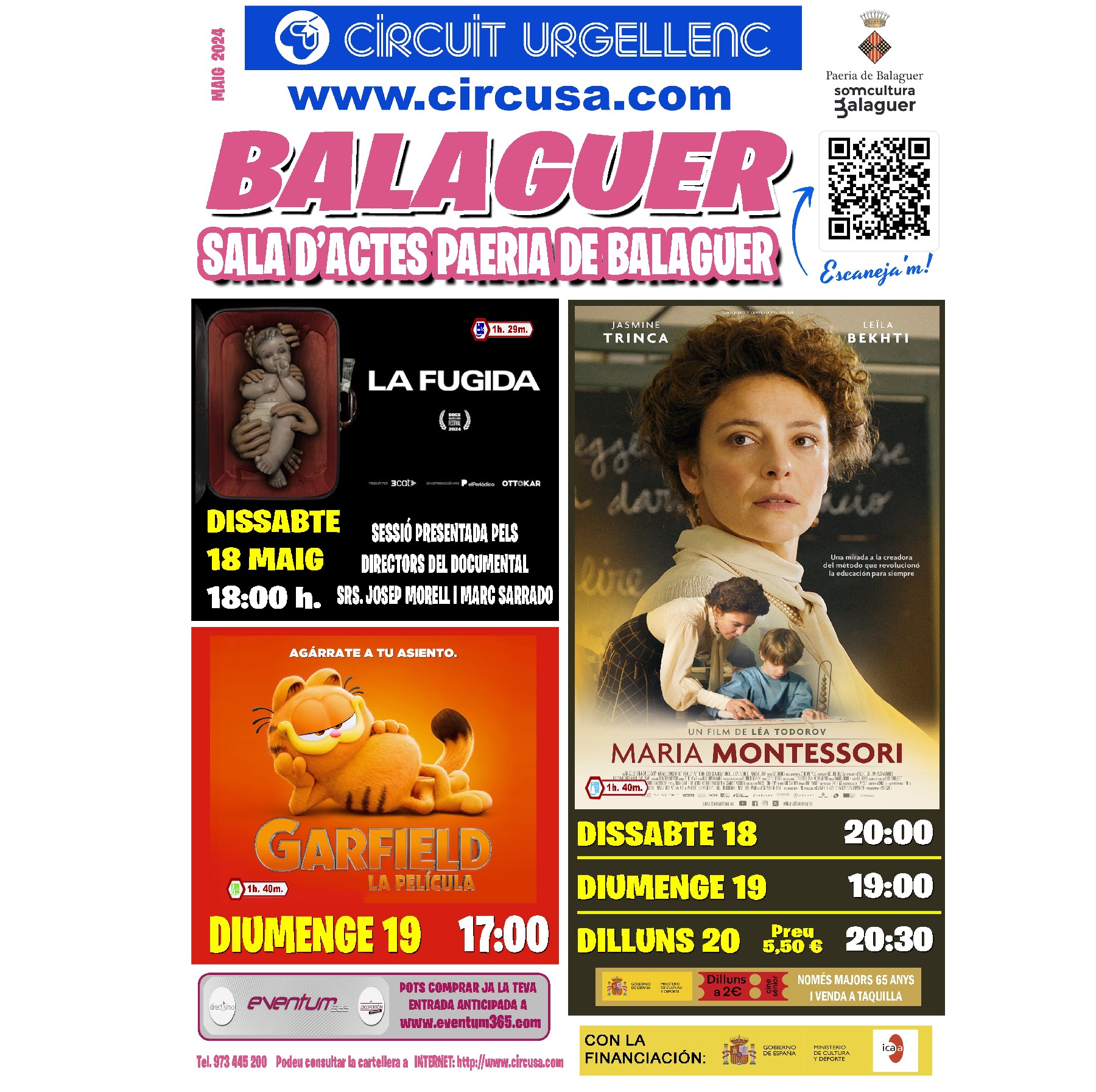 Arriba al cinema Balaguer la projecció de les pel·lícules: LA FUGIDA; GARFIELD, LA PEL·LÍCULA; MARIA MONTESSORI