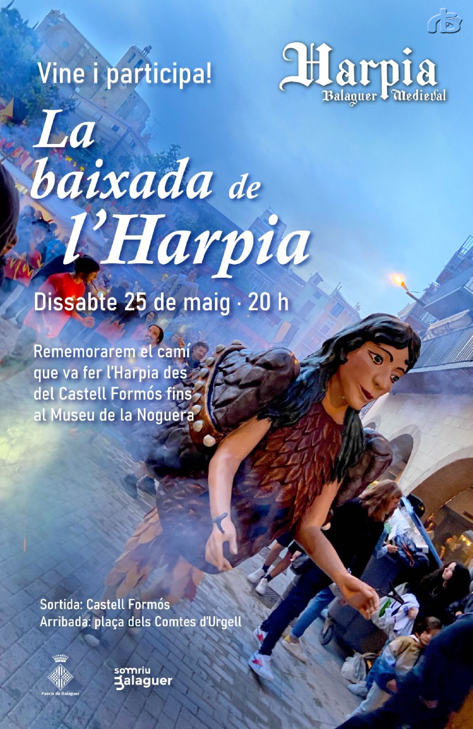 Balaguer celebrarà el seu passat medieval amb la baixada de l'Harpia. La baixada es farà dissabte a les 8 del vespre i el seguici comptarà amb un recorregut des del Castell Formós fins a la plaça del museu on es farà el Ball del Salt de l'Harpia'