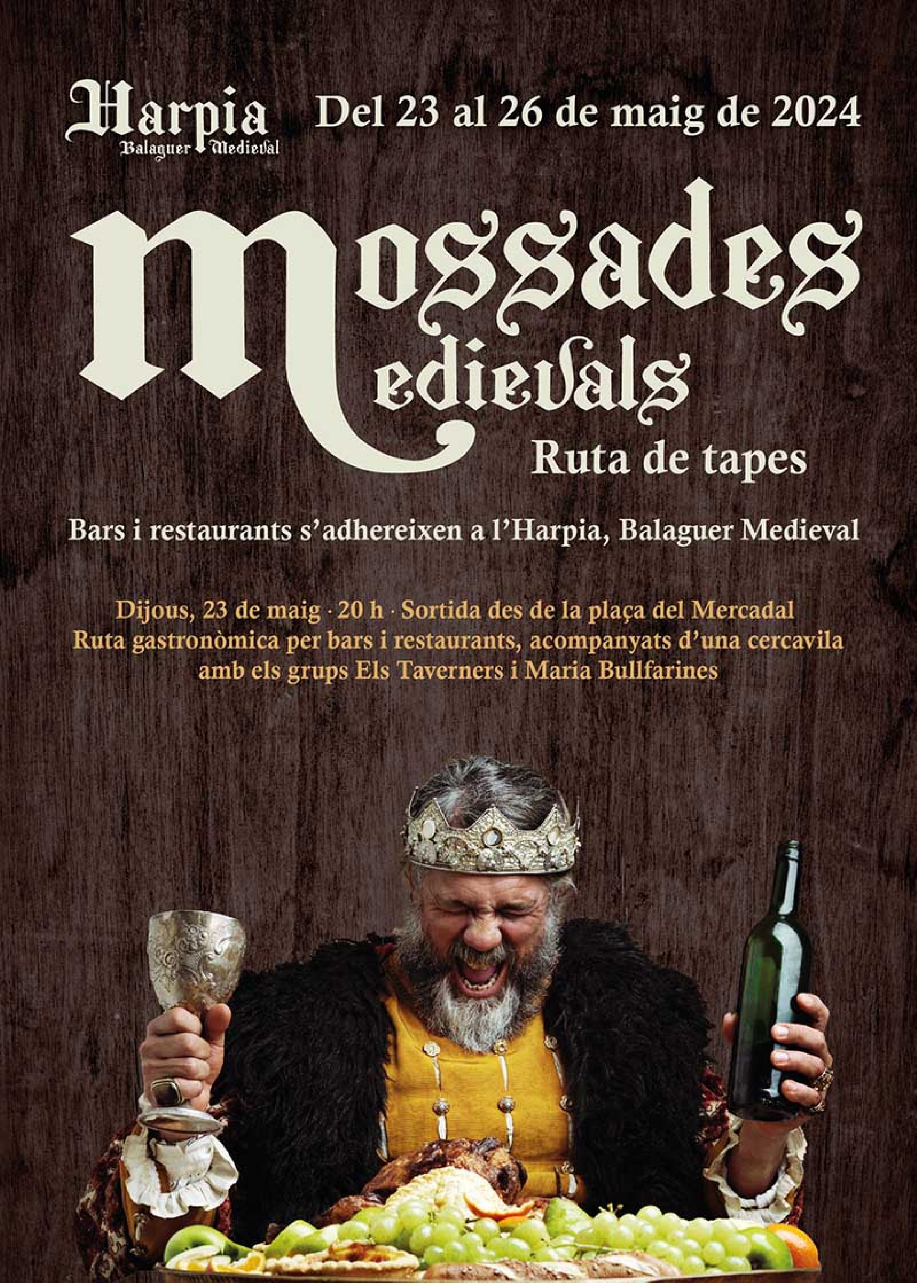 Balaguer celebra del 23 al 26 de maig una nova edició de la festa de l'Harpia Balaguer medieval. Els actes començaran enguany dijous amb una ruta gastronòmica per acompanyada d'una cercavila