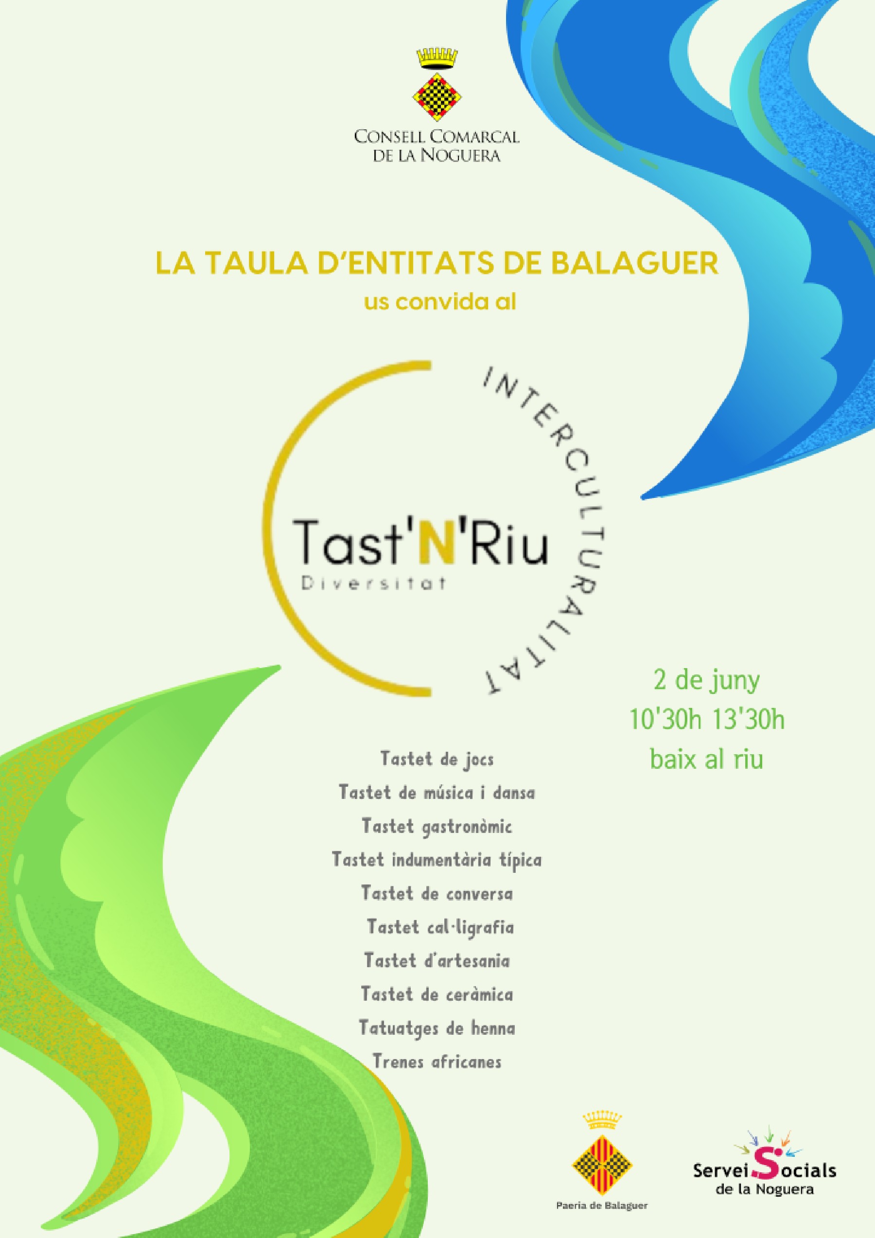 El diumenge 2 de juny té lloc a Balaguer Tast'N'Riu , una activitat que vol posar en valor la diversitat cultural que hi ha a Balaguer