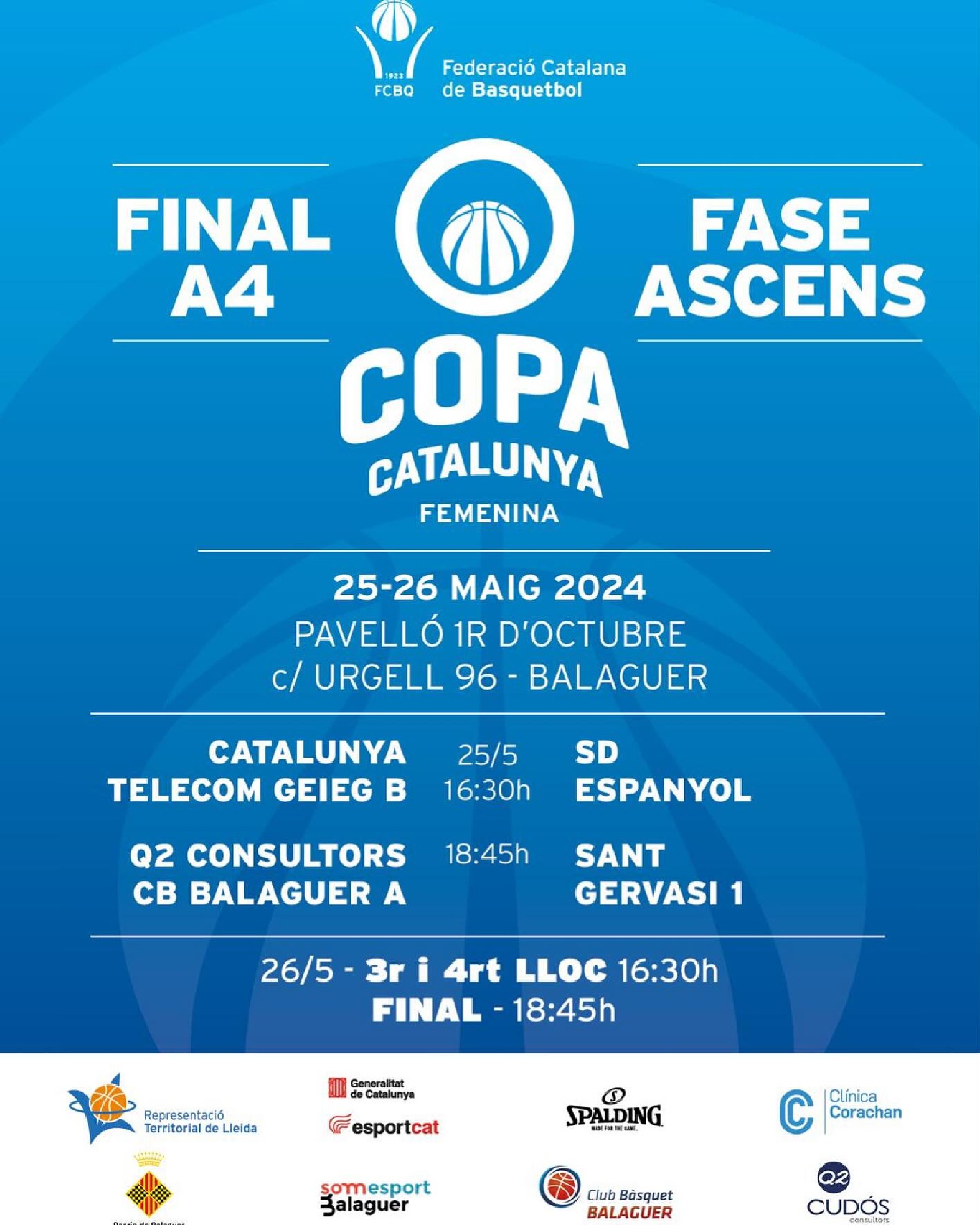 El pròxim cap de setmana es disputarà a Balaguer la Final a 4 de Copa Catalunya Femenina en la qual estarà present el primer equip del Club Bàsquet Balaguer