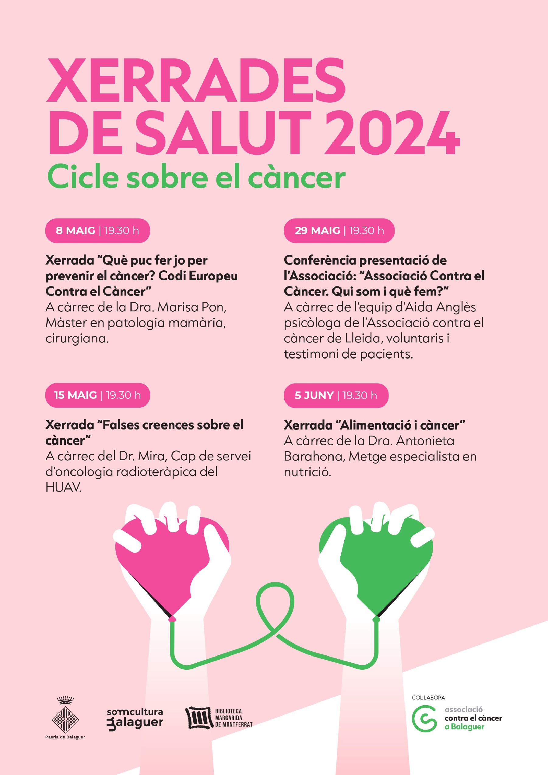 La Biblioteca Margarida de Montferrat organitza per segon any consecutiu un cicle de xerrades de salut dedicades, en aquesta ocasió, al càncer i organitzades en col·laboració amb l'Associació Contra el Càncer a Balaguer