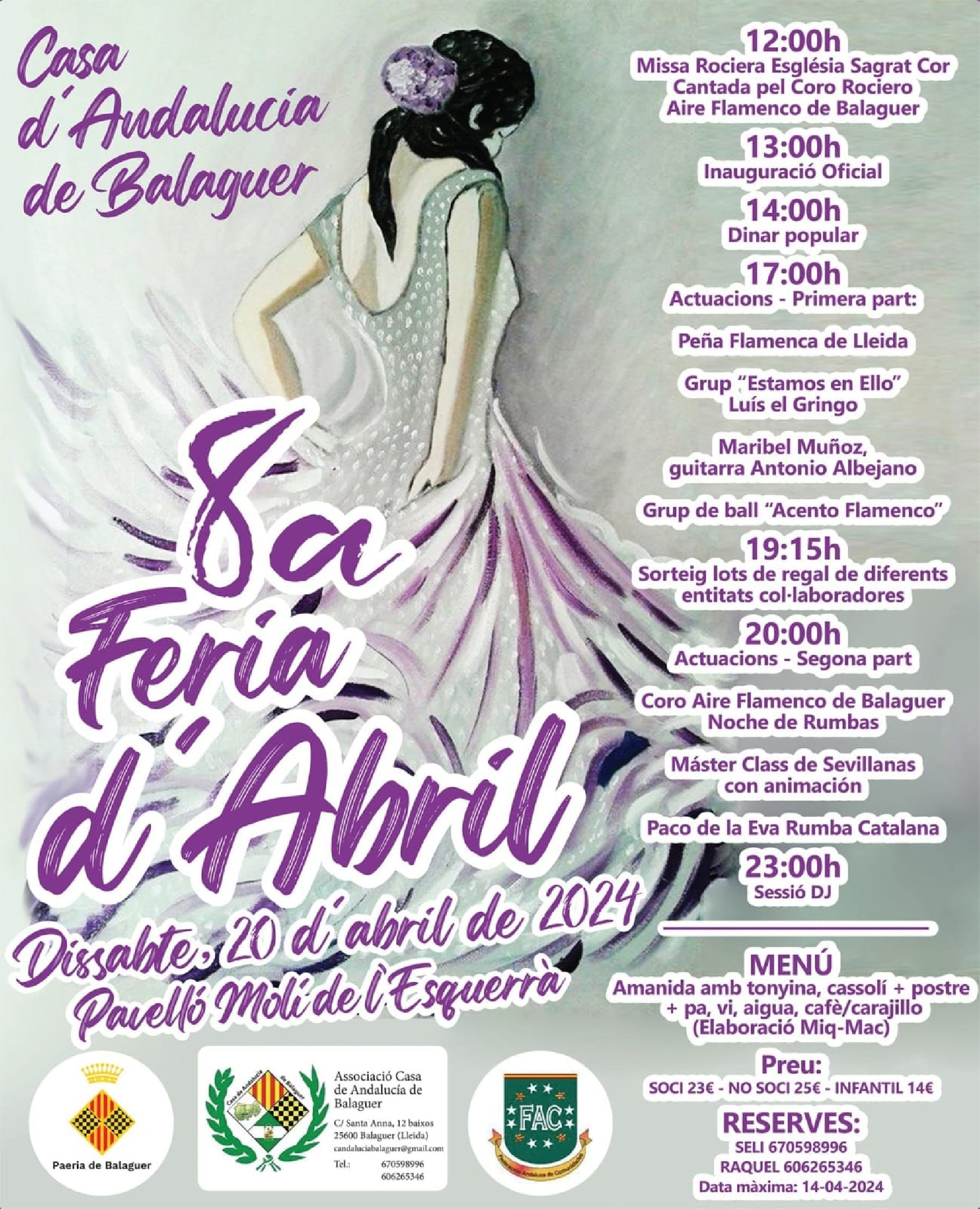 La Casa d'Andalusia de Balaguer celebrarà la vuitena edició de la Feria d'Abril el proper dissabte dia 20, amb un seguit d'activitats i actuacions