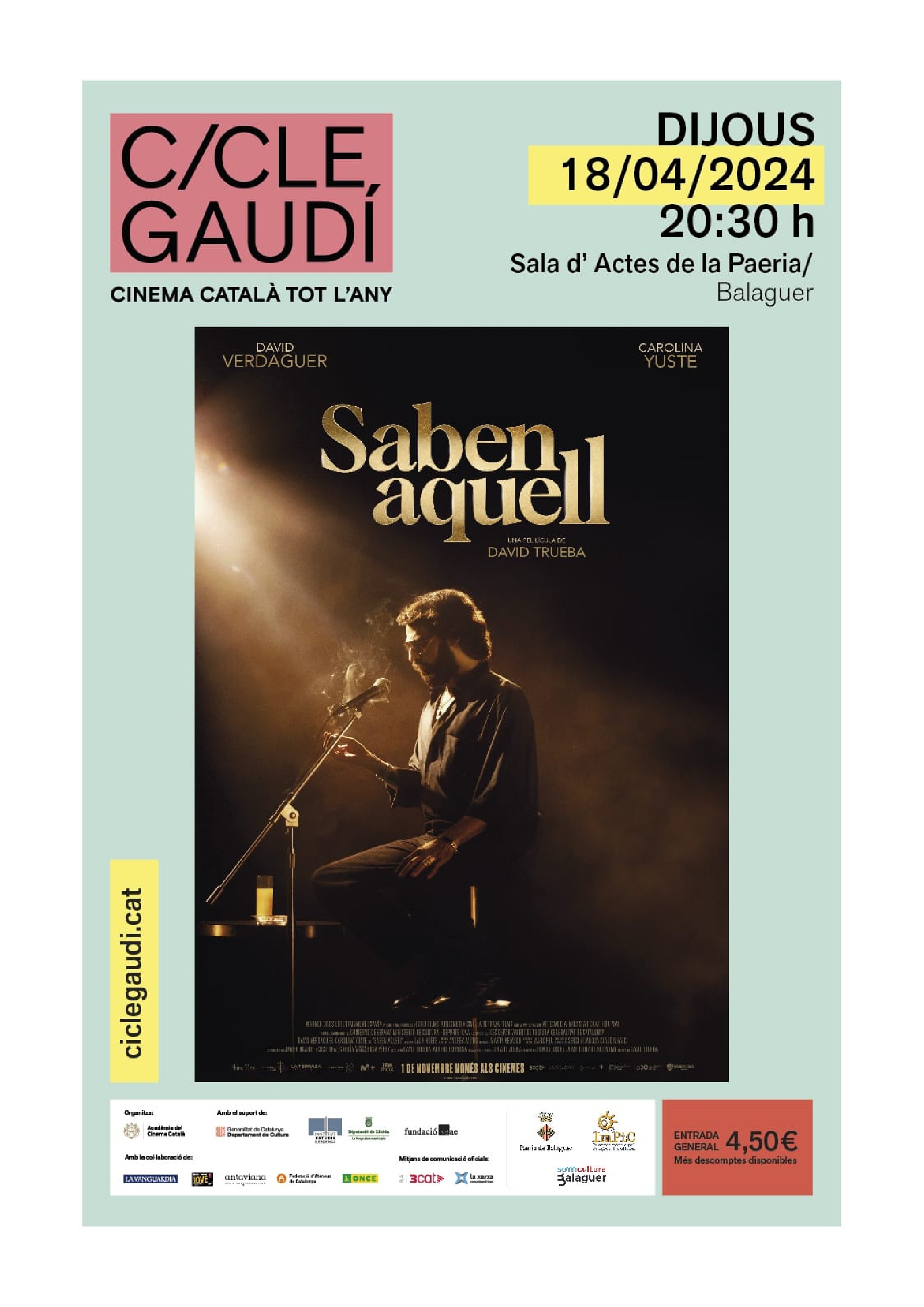 Continua a Balaguer el Cicle Gaudí de cinema amb la projecció aquest dijous dia 18 d'abril de la pel·lícula 'Saben aquell'. Pel·lícula sobre els primers anys de carrera de l'humorista Eugenio