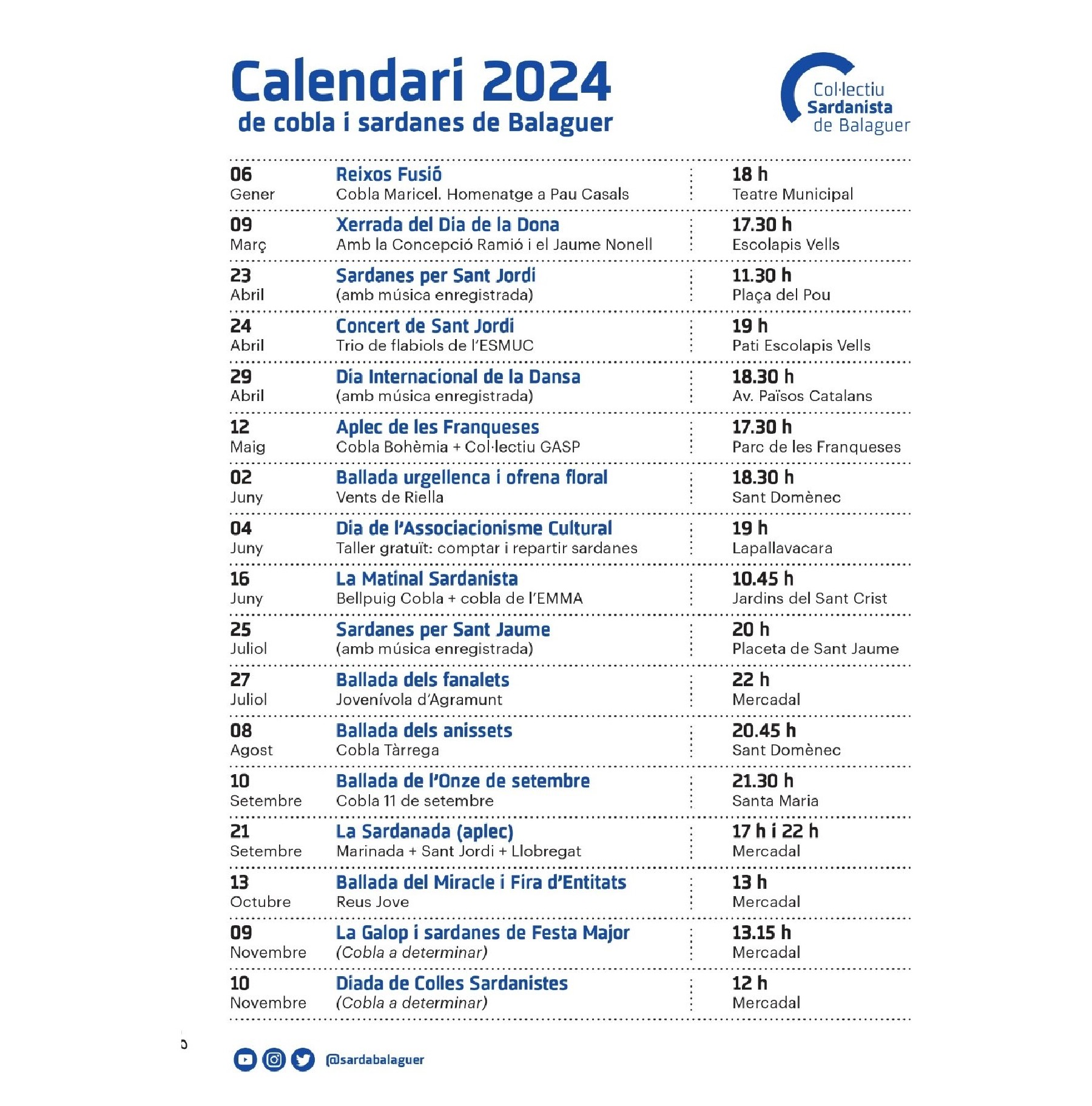 Balaguer presenta el calendari sardanista del 2024