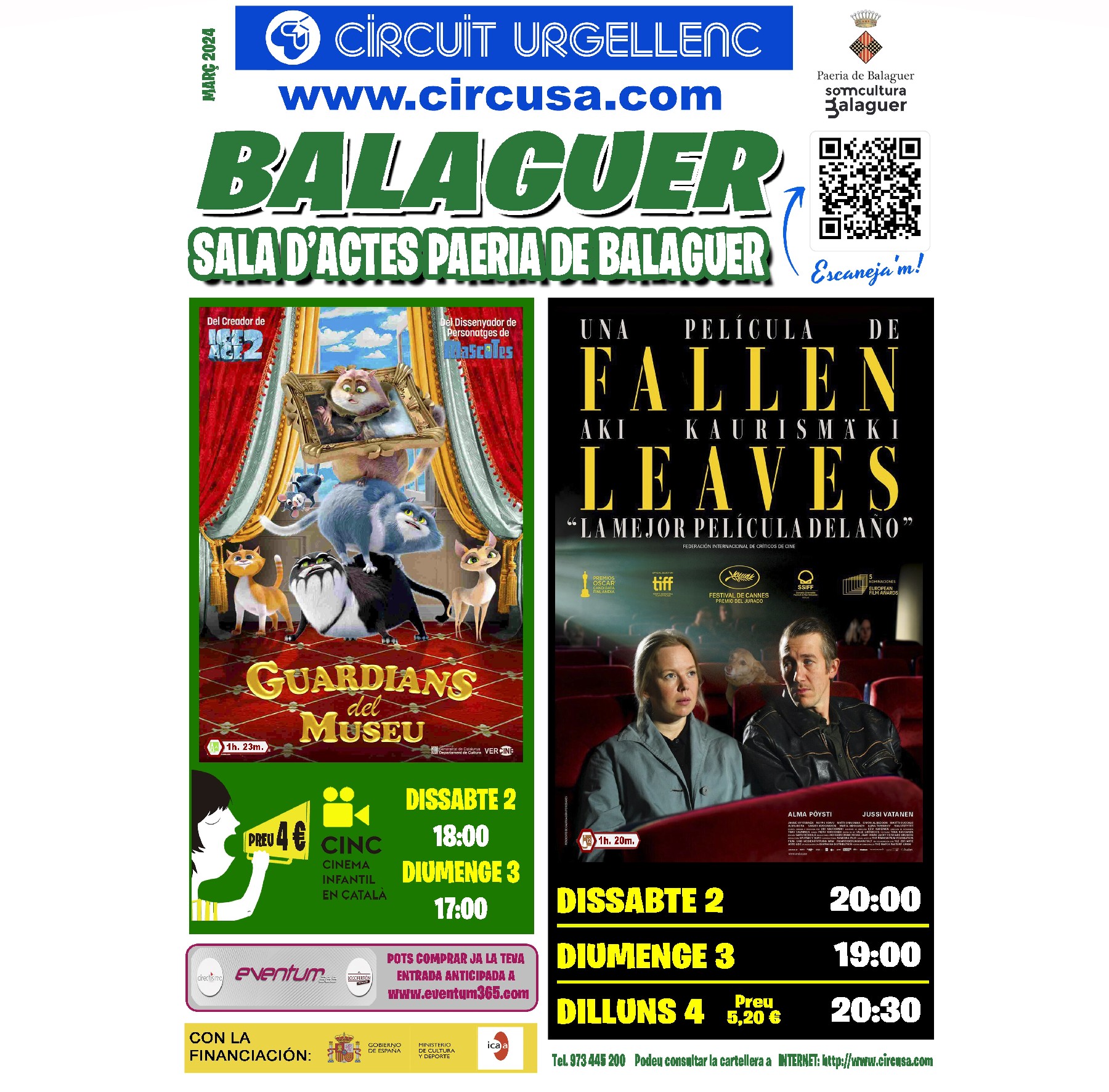 Arriba al cinema Balaguer la projecció de les pel·lícules GUARDIANS AL MUSEU i també FALLEN LEAVES