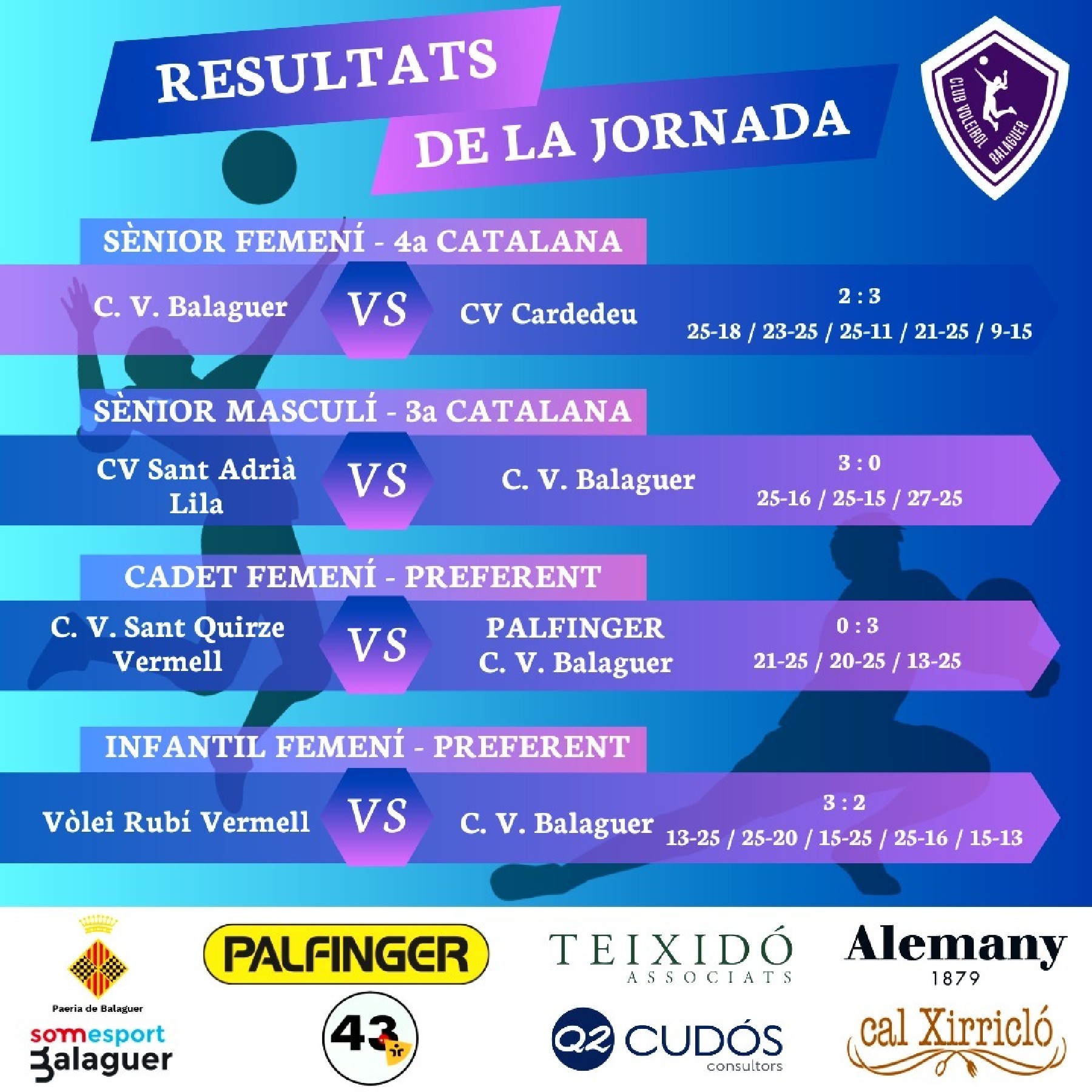 El Sènior femení del Club Voleibol Balaguer cau derrotat 2 a 3 contra el Cardedeu. El masculí també cedeix per 3 a 0 contra el Sant Adrià