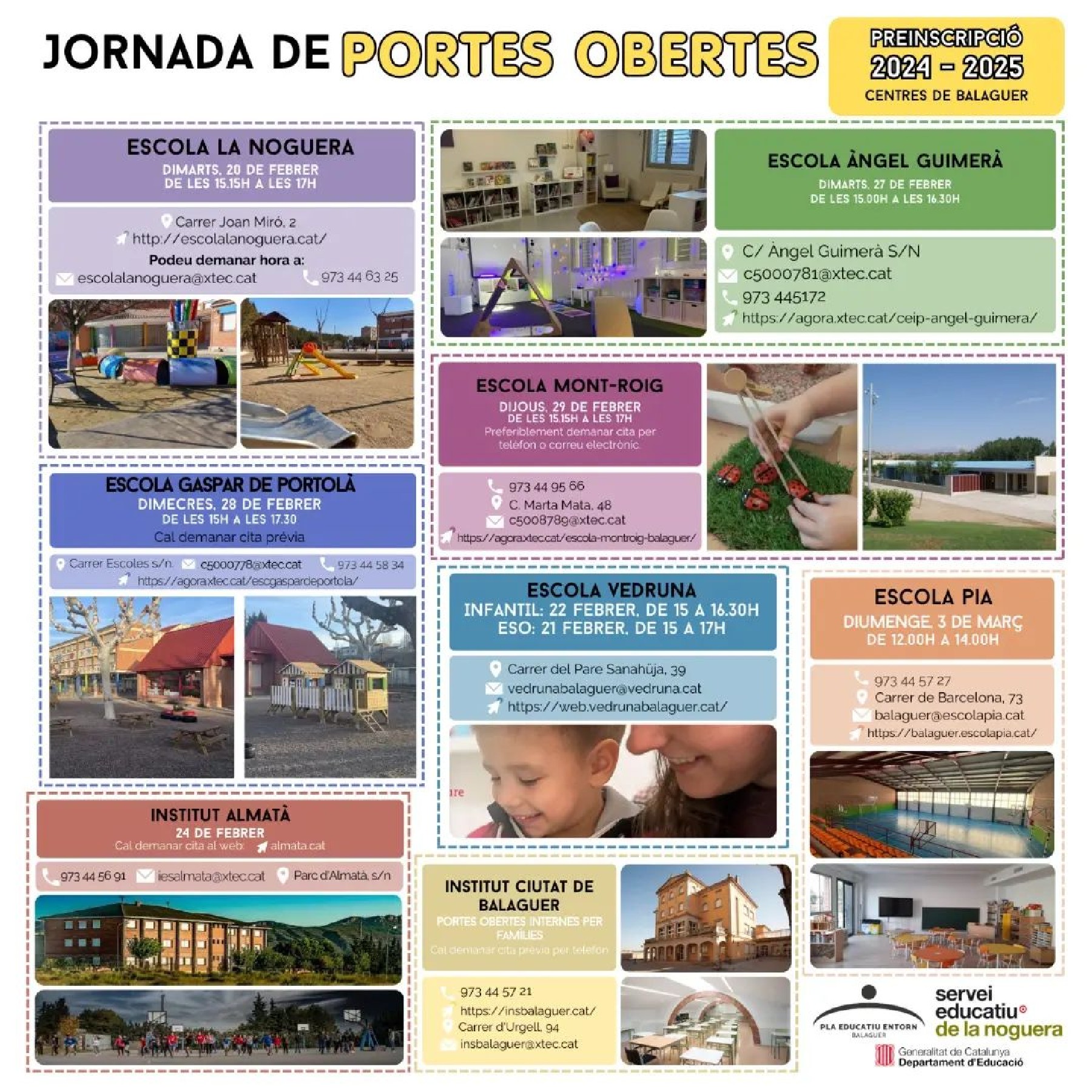 Des d'aquesta setmana i fins al diumenge 3 de març se celebren les jornades de portes obertes als diferents centres educatius de primària i secundària de la ciutat de Balaguer