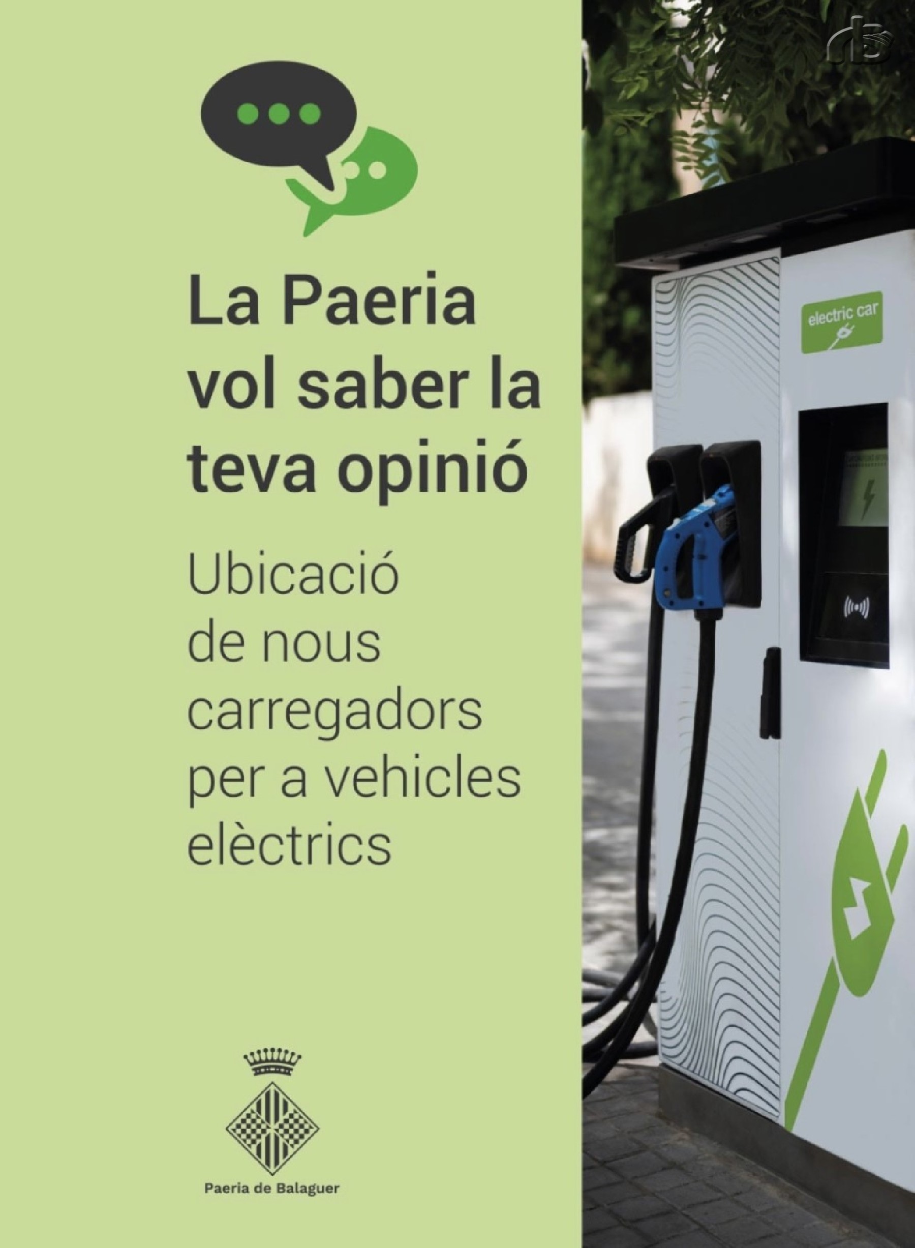 La Paeria de Balaguer posa en marxa una consulta per saber si la ciutadania considera necessària la instal·lació de més carregadors per a vehicles elèctrics i, sobretot, el lloc on situar-los