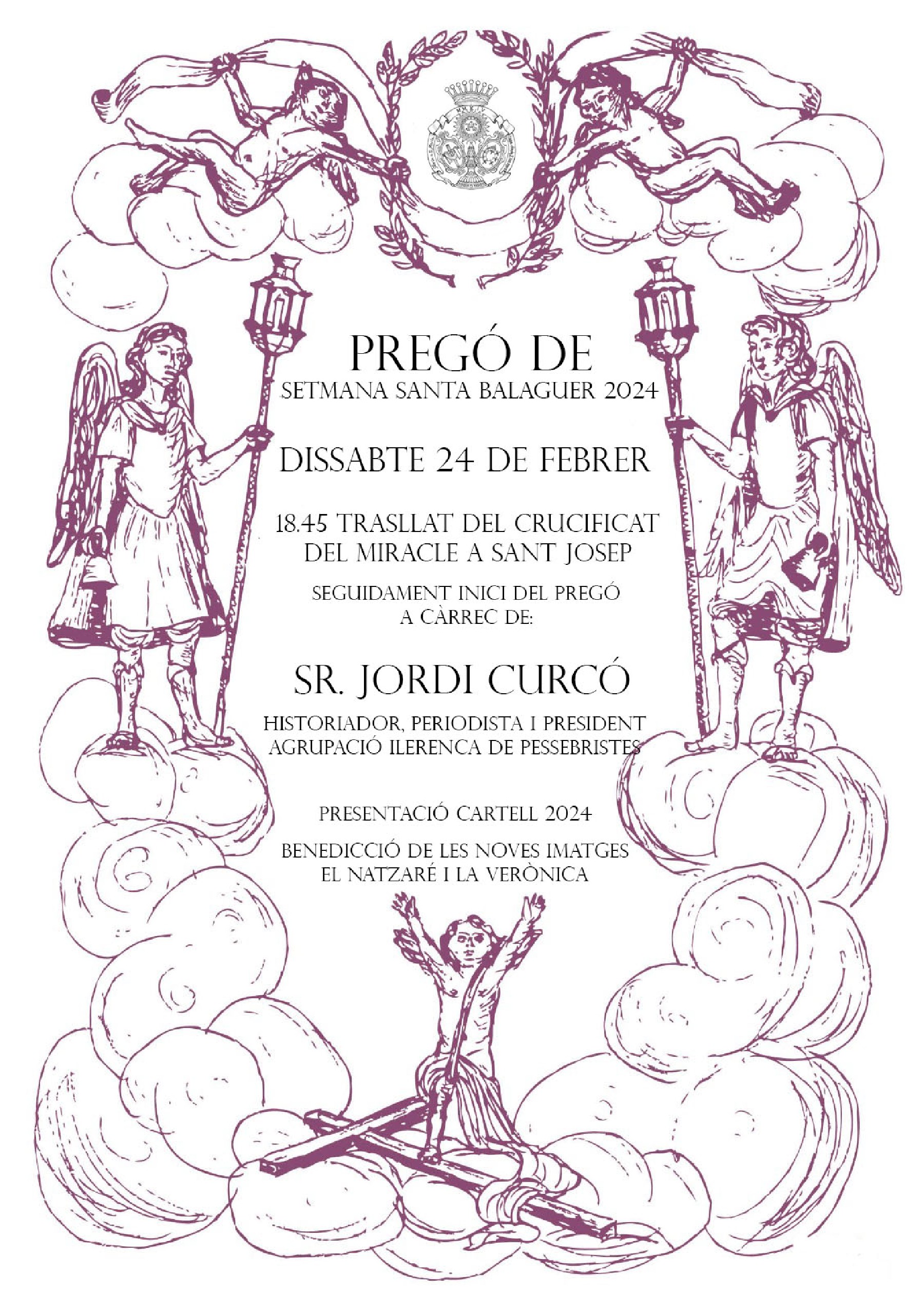 Dissabte 24 de febrer tindrà lloc el Pregó de Setmana Santa de Balaguer i la presentació pública de les dues noves imatges