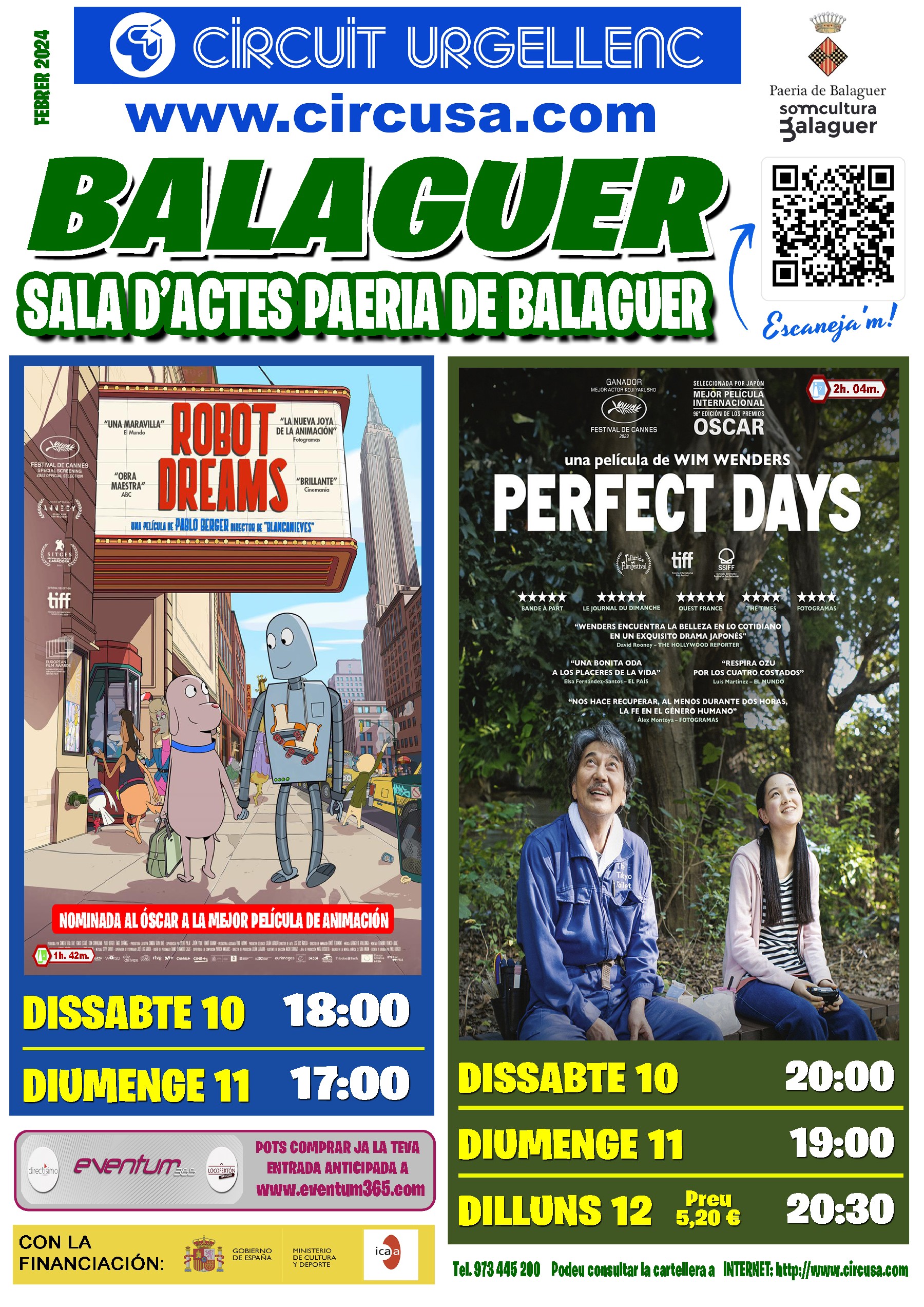 Arriba al cinema Balaguer la projecció de les pel·lícules ROBOT DREAMS i també PERFECT DAYS