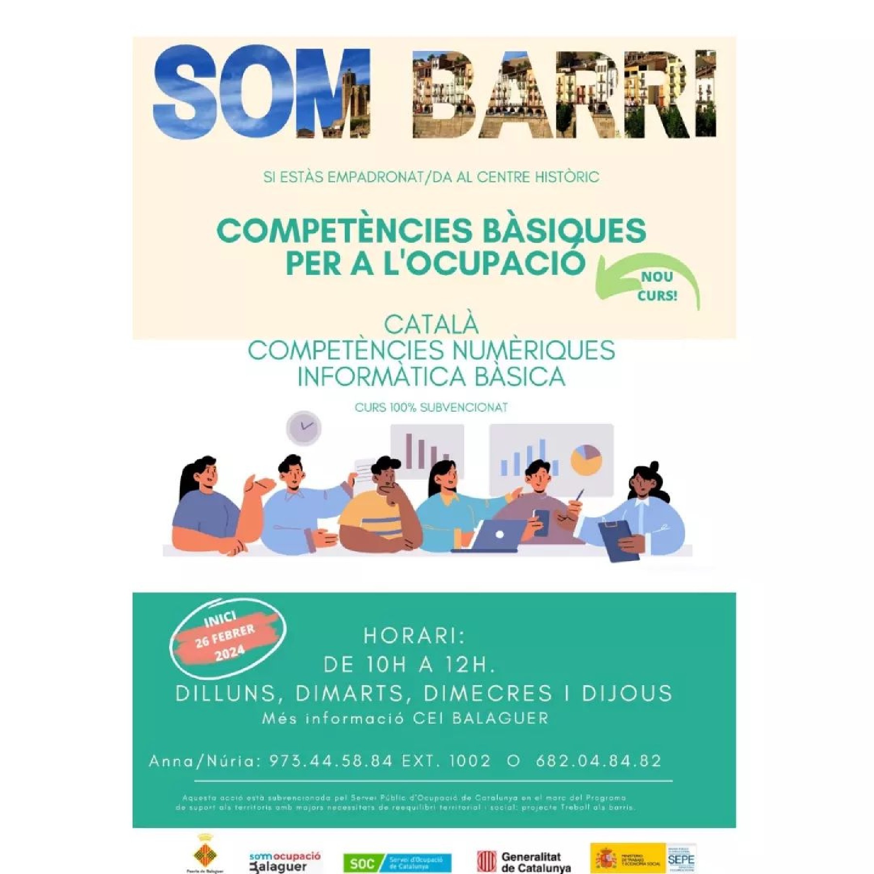 A finals d'aquest mes començarà a Balaguer el Curs de 'Competències bàsiques per a l'ocupació' dins del dispositiu Som Barri