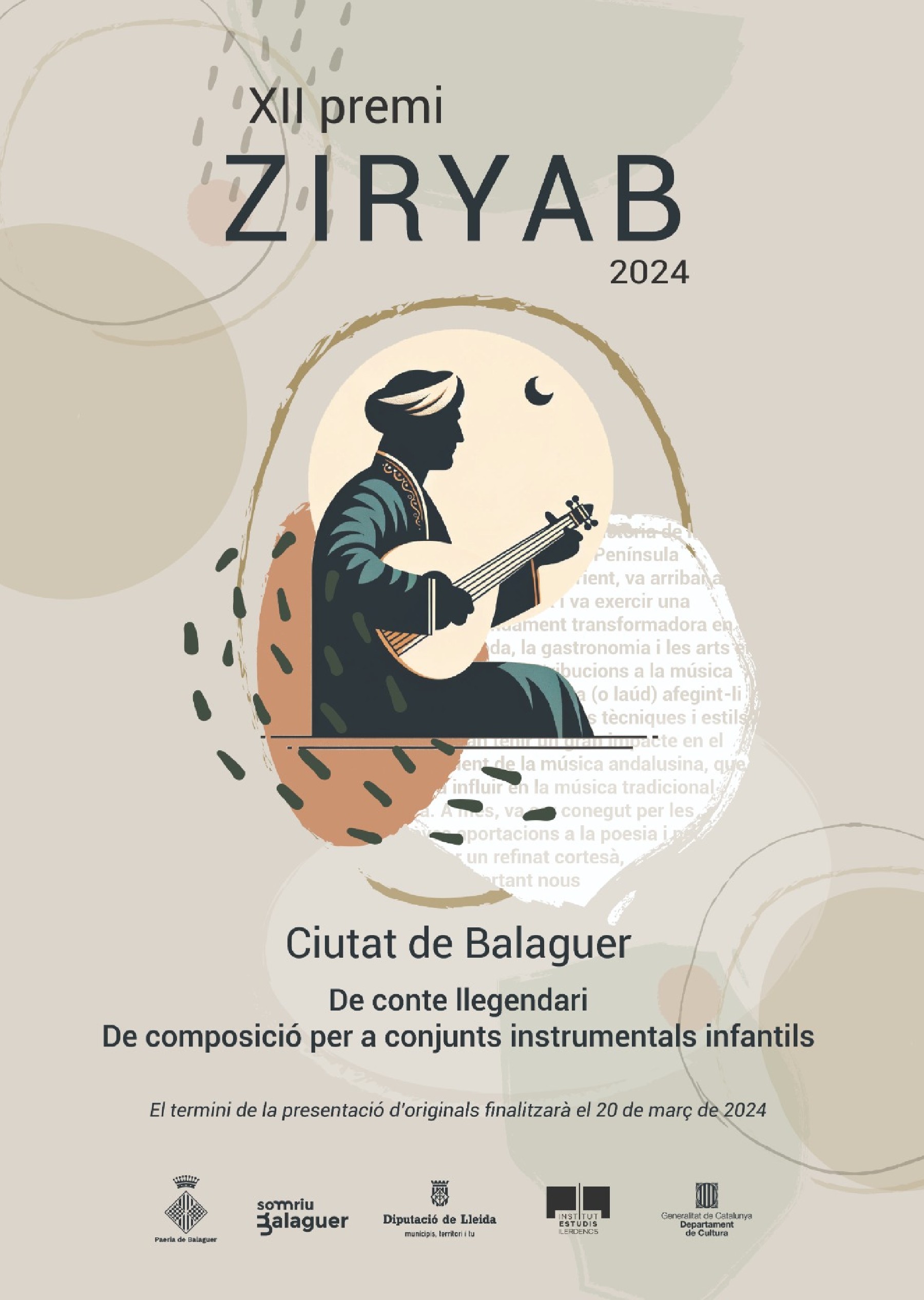 La Paeria de Balaguer convoca la Xll edició dels Premis Ziryab. Els Premis Ziryab compten amb dues categories: la de conte llegendari i la de composició per a conjunts instrumentals