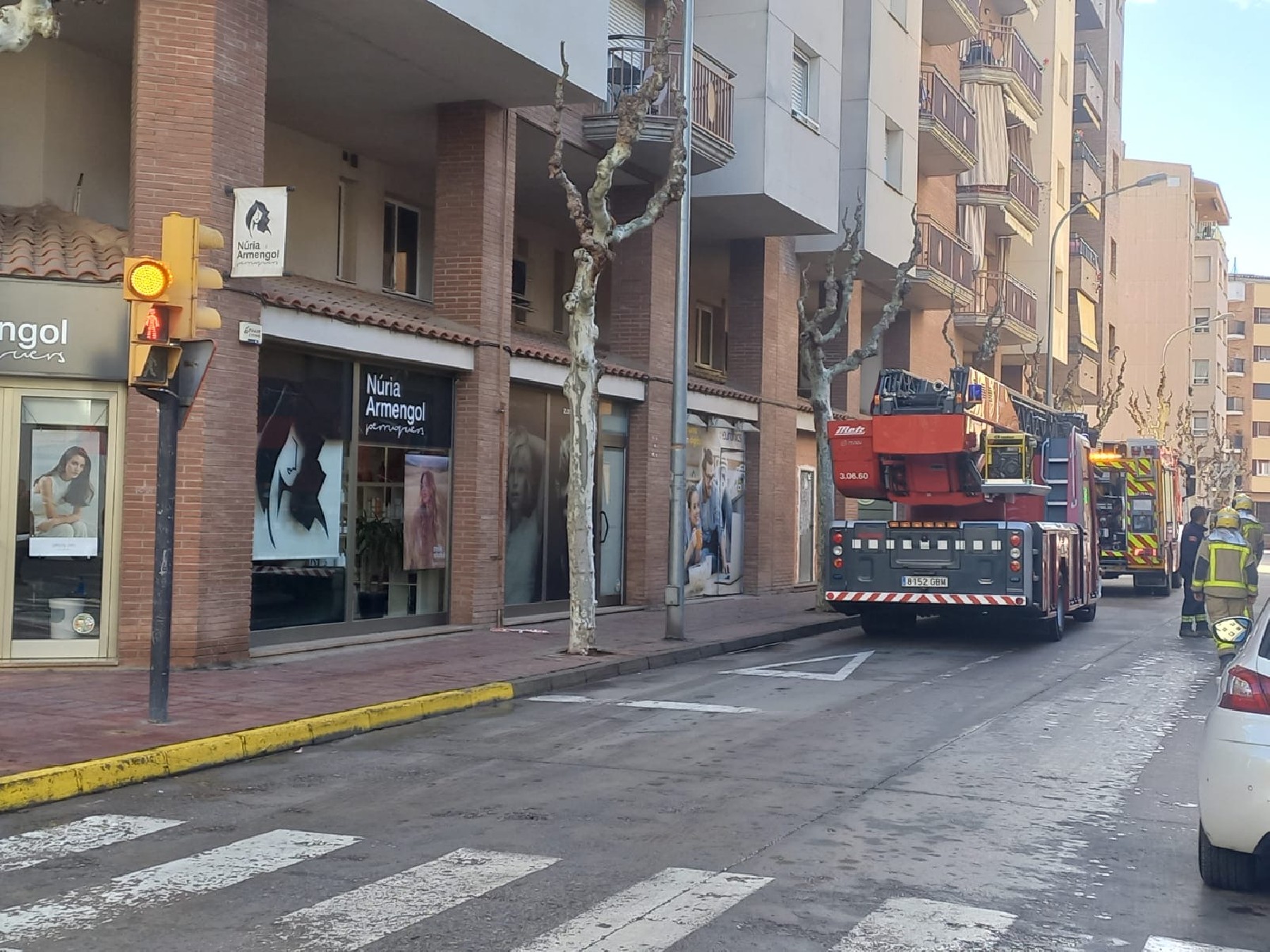 Diverses dotacions dels Bombers i de la Guàrdia Urbana han hagut d'intervenir aquest dijous al matí per una fuita de gas a la façana de l'edifici de la cantonada del Carrer Urgell amb el Carrer Barcelona