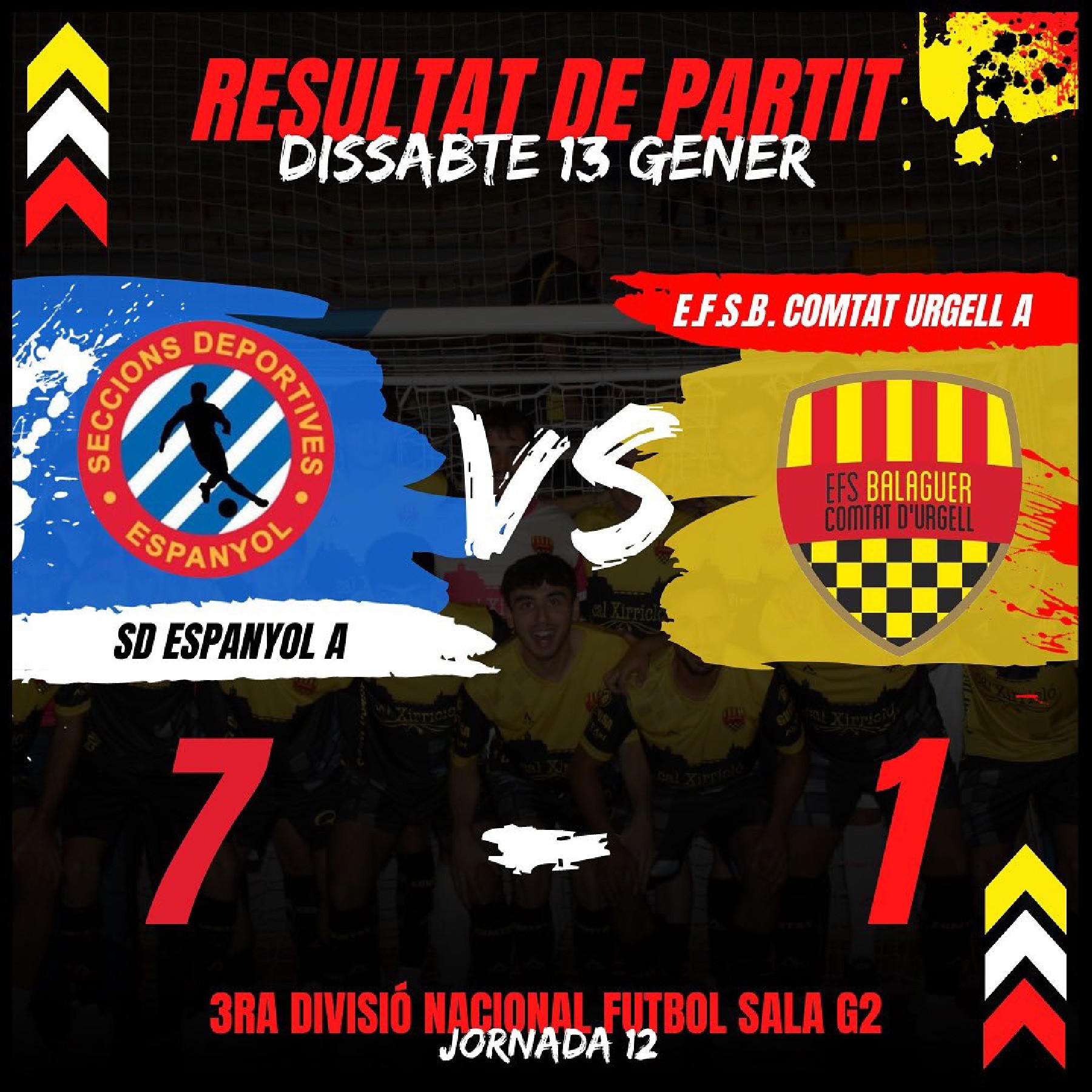 El Comtat d'Urgell de futbol sala encaixa una derrota per 7 a 1 contra l'Espanyol. El Comtat B empata a 3 en el seu derbi comarcal contra La Sentiu