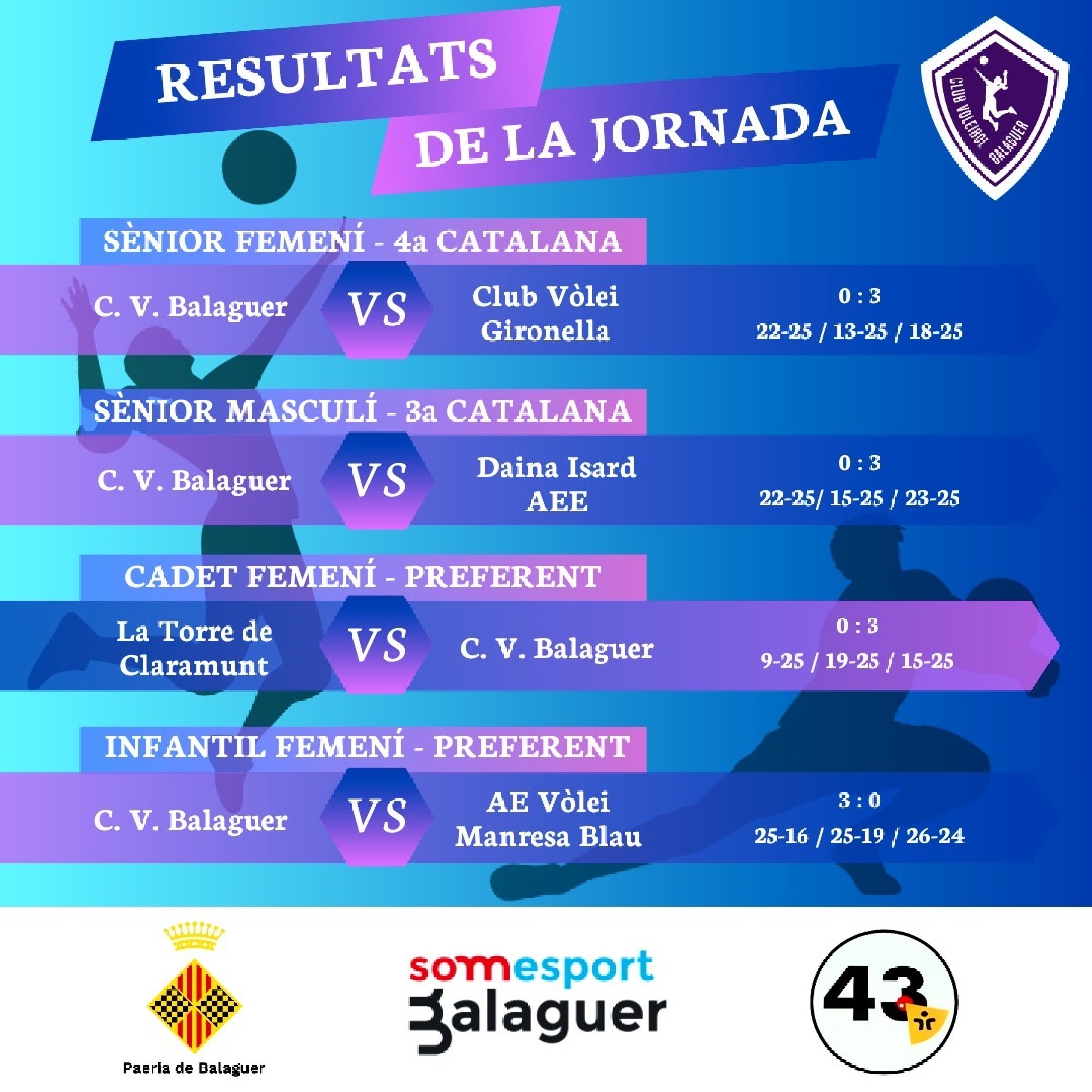 El Club Voleibol Balaguer tanca l'any amb derrotes contundents als primers equips i victòries i derrotes més ajustades a les categories inferiors, tant dels equips federats com dels escolars