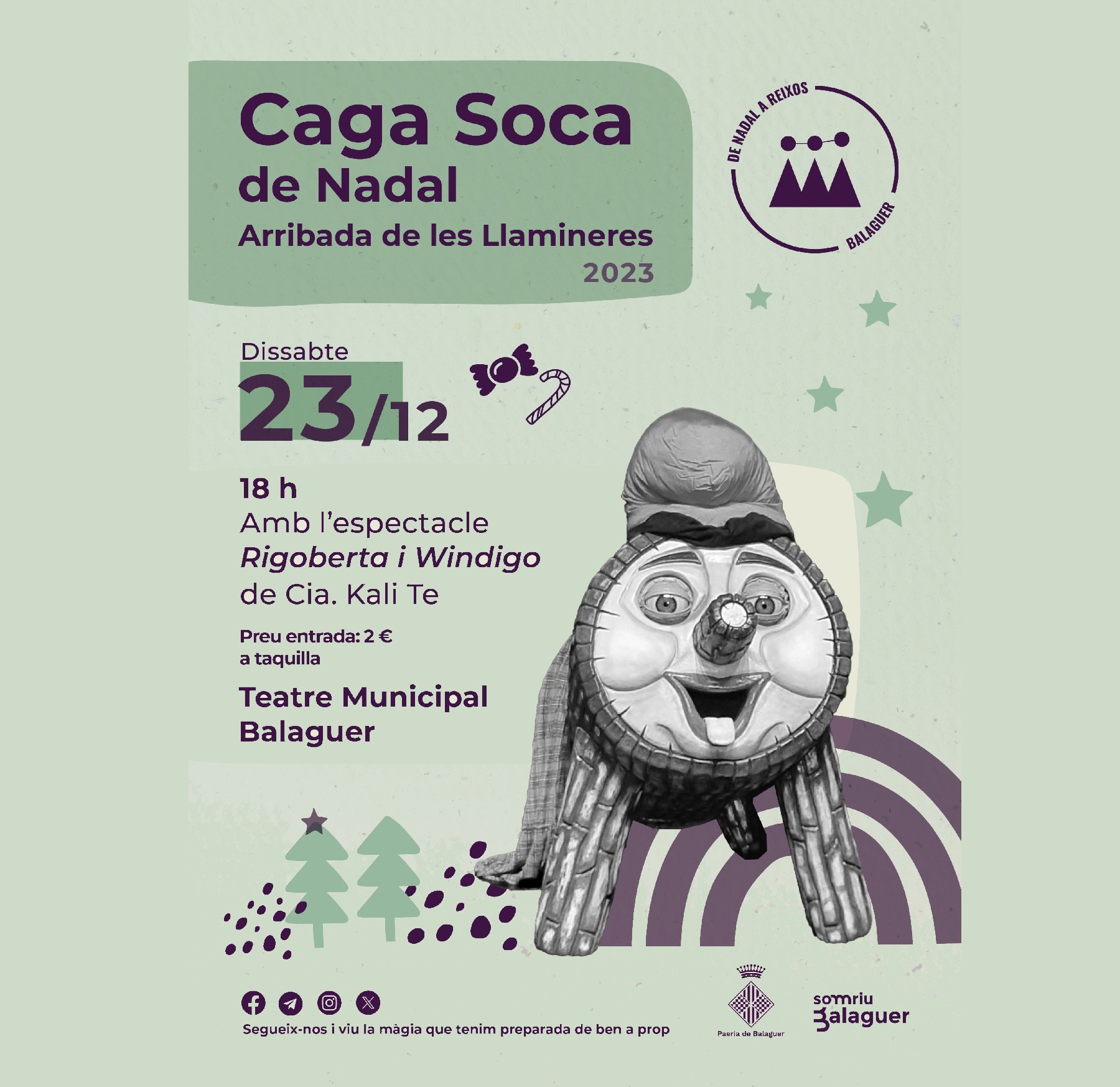Aquest dissabte se celebra al Teatre Municipal de Balaguer el Caga Soca de Nadal coincidint amb l'arribada de les Llamineres. Prèviament tindrà lloc l'espectacle familiar Rigoberta i el Windigo