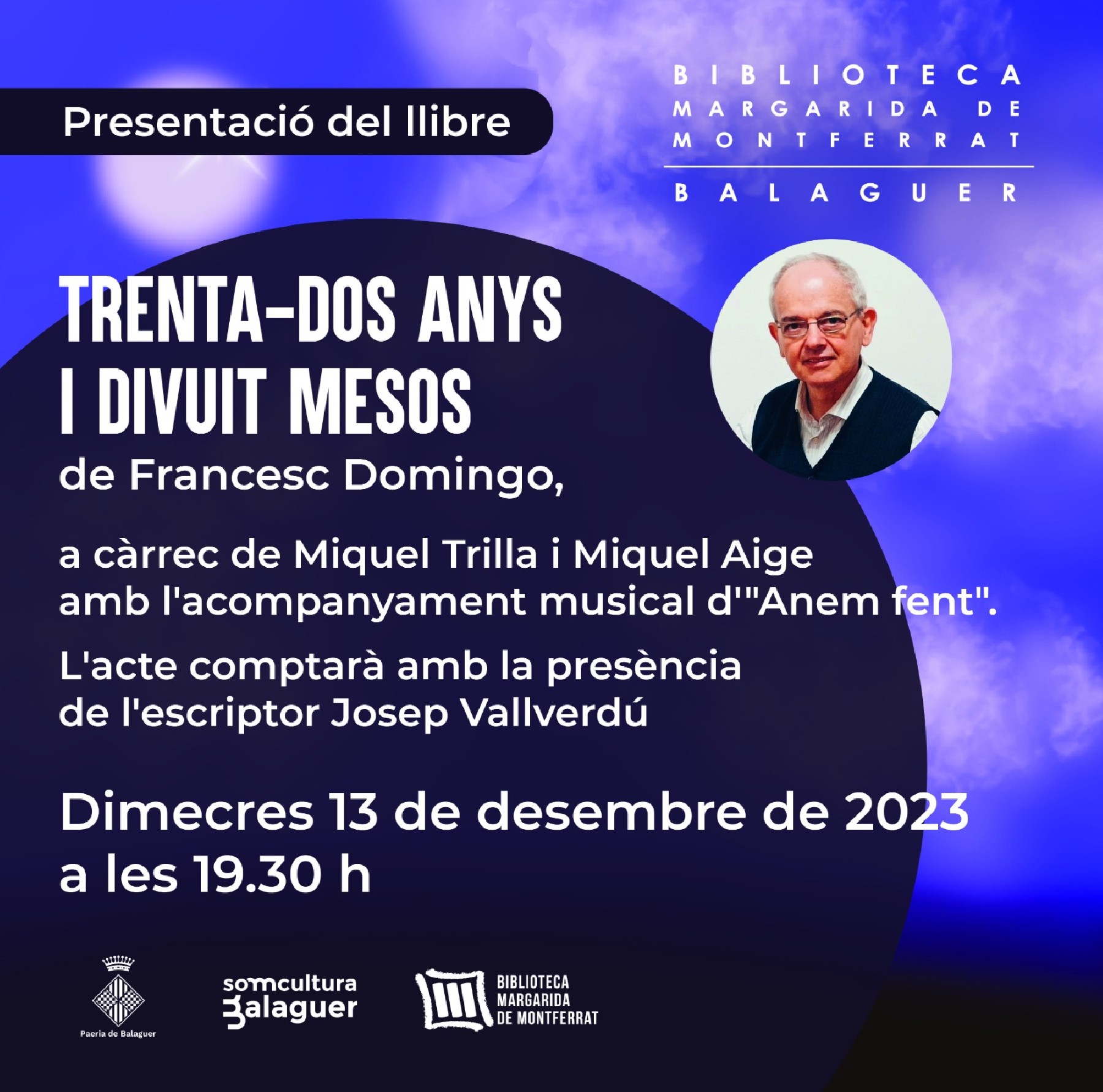Aquest dimecres dia 13 de desembre Francesc Domingo presentarà el poemari 'Trenta-dos anys i divuit mesos'