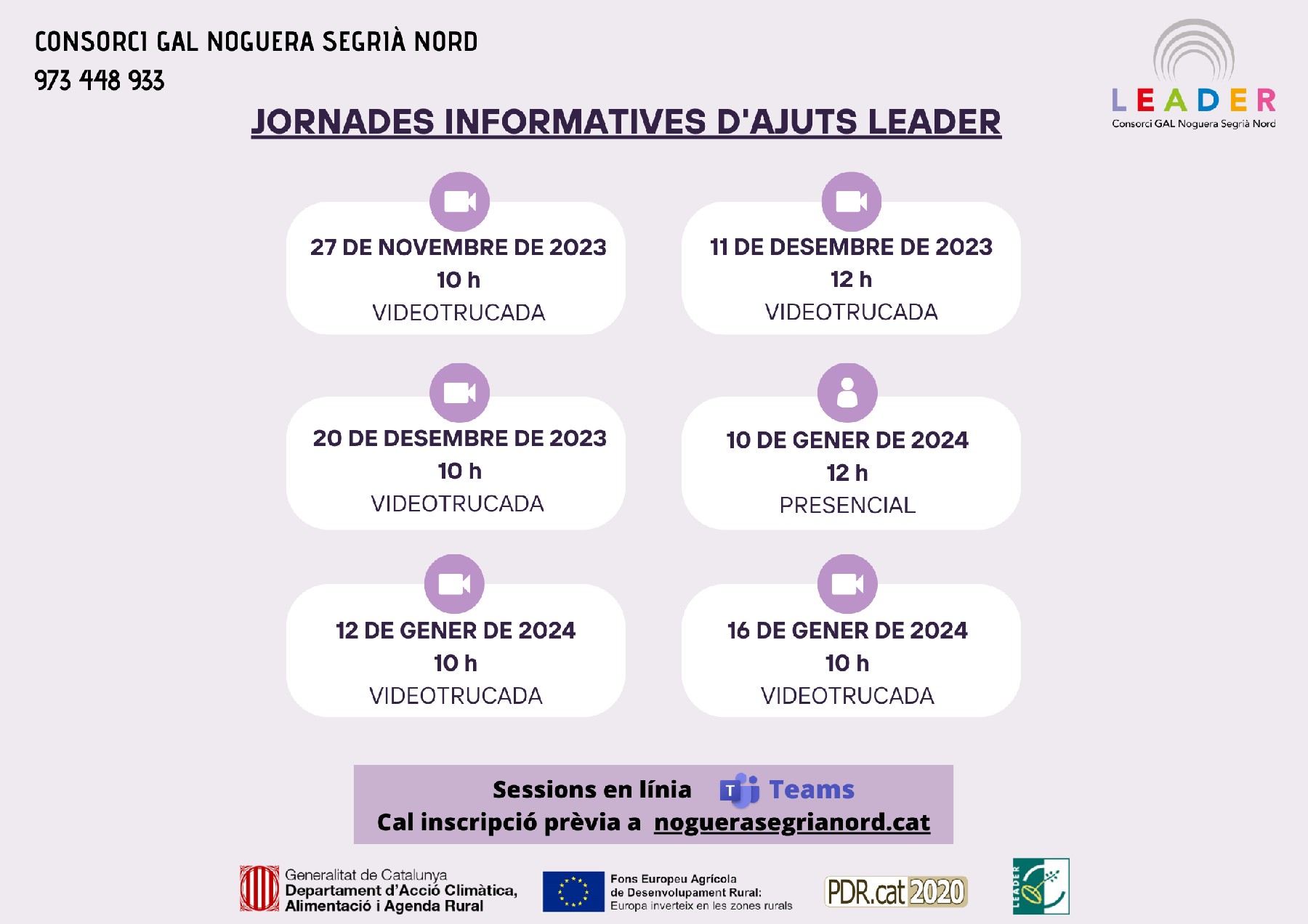 Es publiquen les bases reguladores dels ajuts LEADER convocatòria 2023. El Consorci GAL Noguera Segrià Nord organitza sessions informatives en línia i presencials.