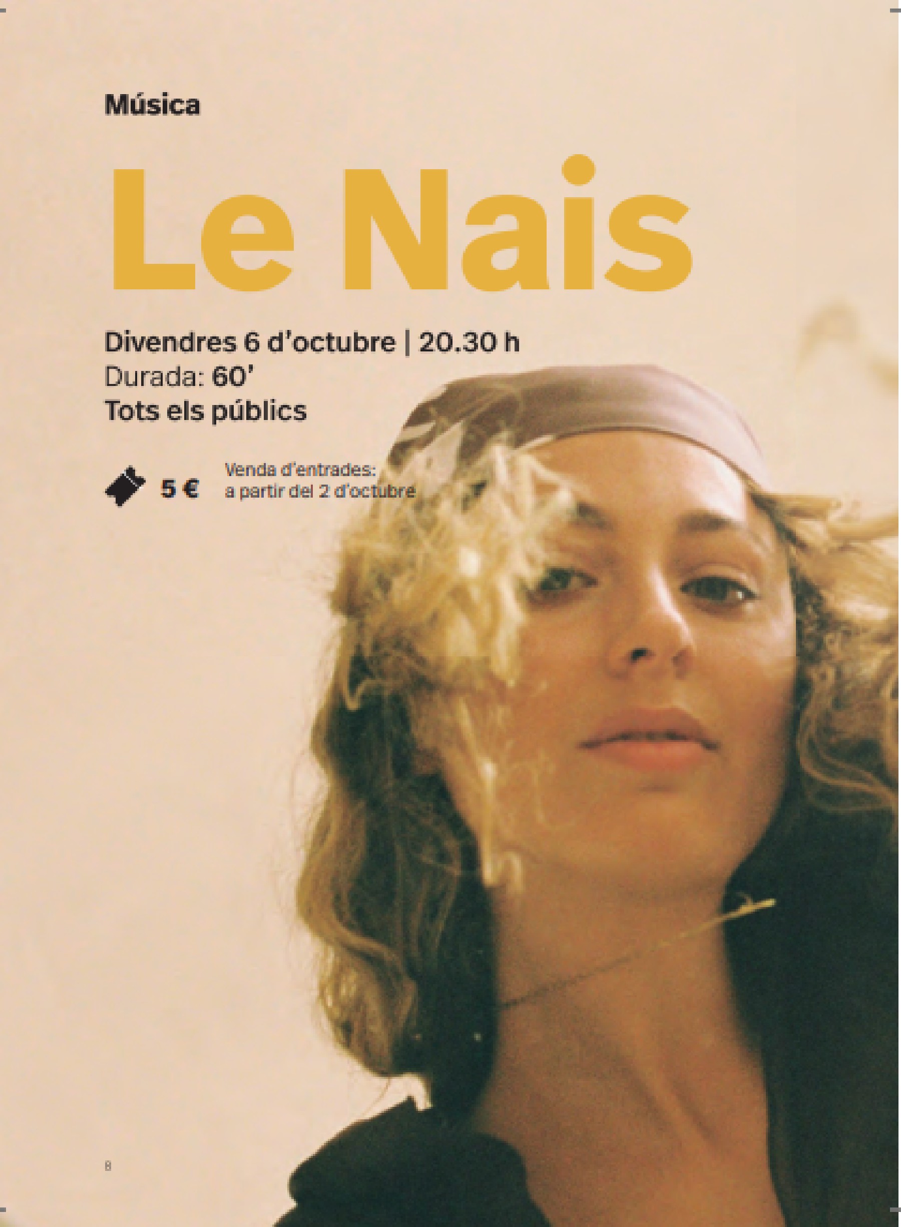 La balaguerina Naida Camarasa, coneguda artísticament com Le Nais, inicia aquest divendres la 26a temporada d'arts escèniques i música del Teatre Municipal de Balaguer