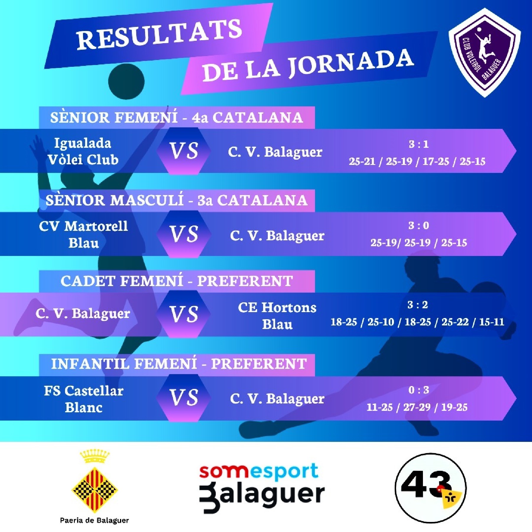 Els primers equips del Club Voleibol Balaguer han iniciat temporada amb derrota. El femení va caure per 3 a 1 a Igualada i el masculí 3 a 0 a Martorell. El cadet i l'infantil federats van guanyar