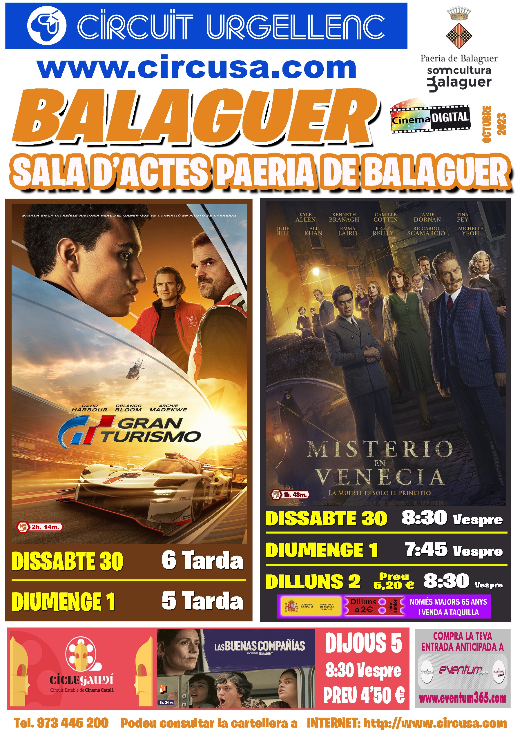 Arriba al cinema Balaguer la projecció de la pel·lícula GRAN TURISMO i també MISTERIO EN VENECIA