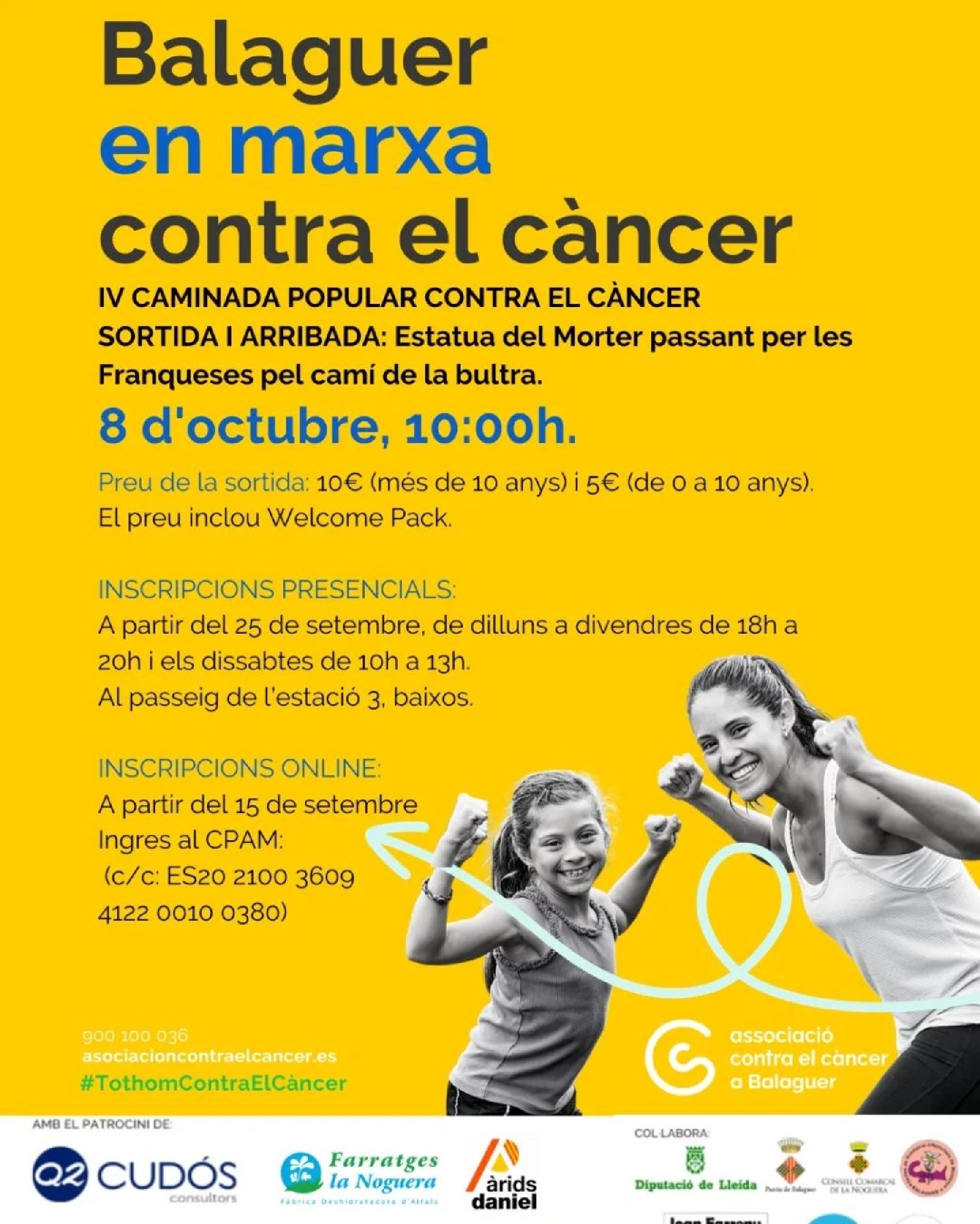 Balaguer en marxa contra el càncer. IV Caminada popular contra el càncer el diumenge 8 d'octubre