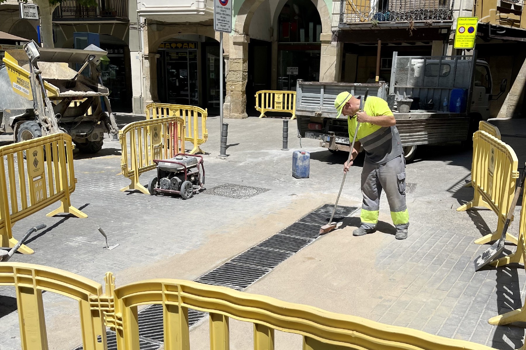 La Paeria de Balaguer ha acabat d'instal·lar aquesta setmana una part de la reixa de recollida pluvial de l'entrada a la plaça del Mercadal
