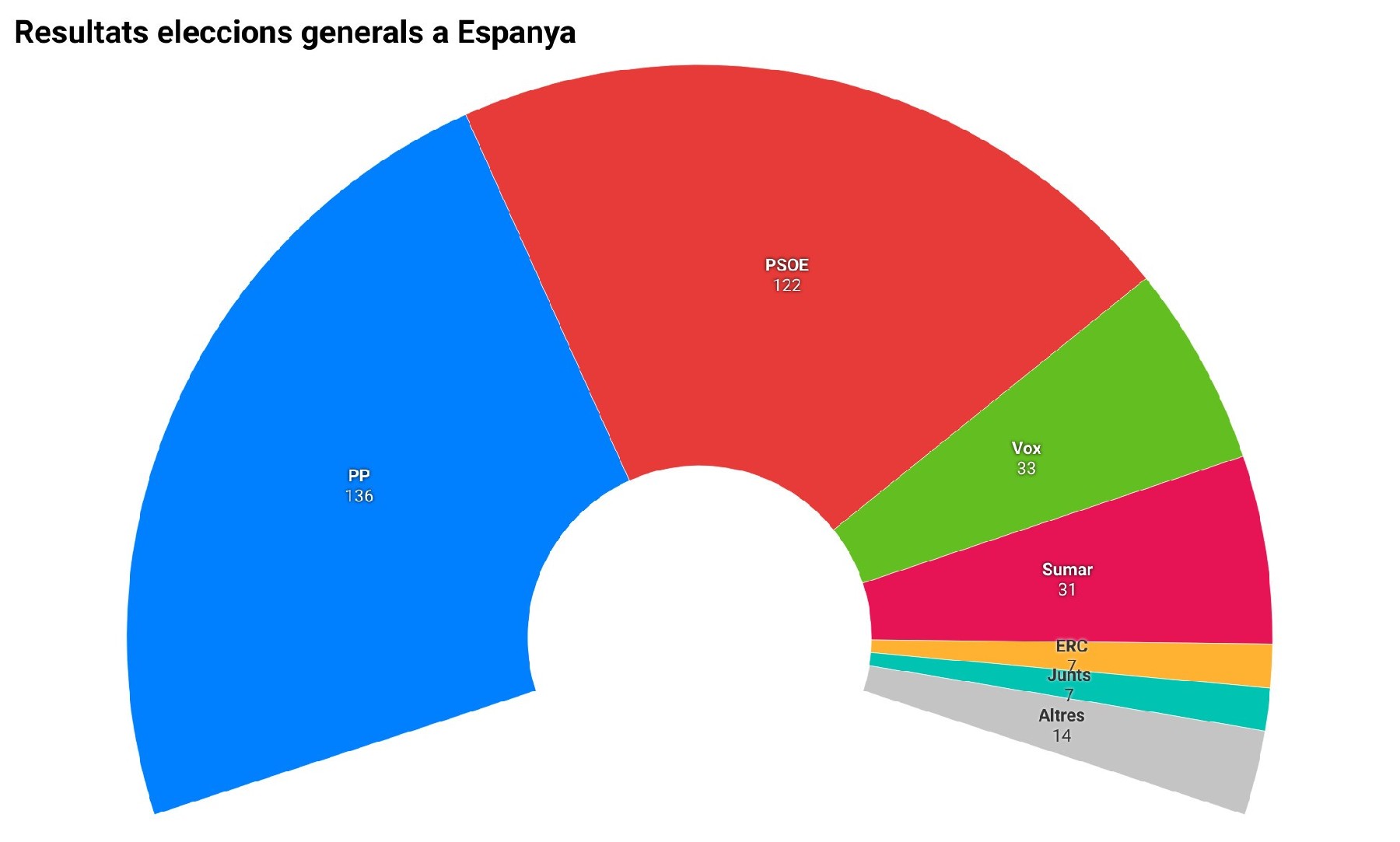Feijóo guanya el 23-J però lluny de sumar amb Vox i Sánchez aguanta però queda en mans dels independentistes. La ultradreta i Sumar queden frec a frec (33 diputats contra 31) i l'independentisme perd 9 escons